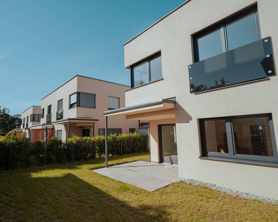 • Großzügige, überdachte Terrassen und eingezäunte Eigengärten