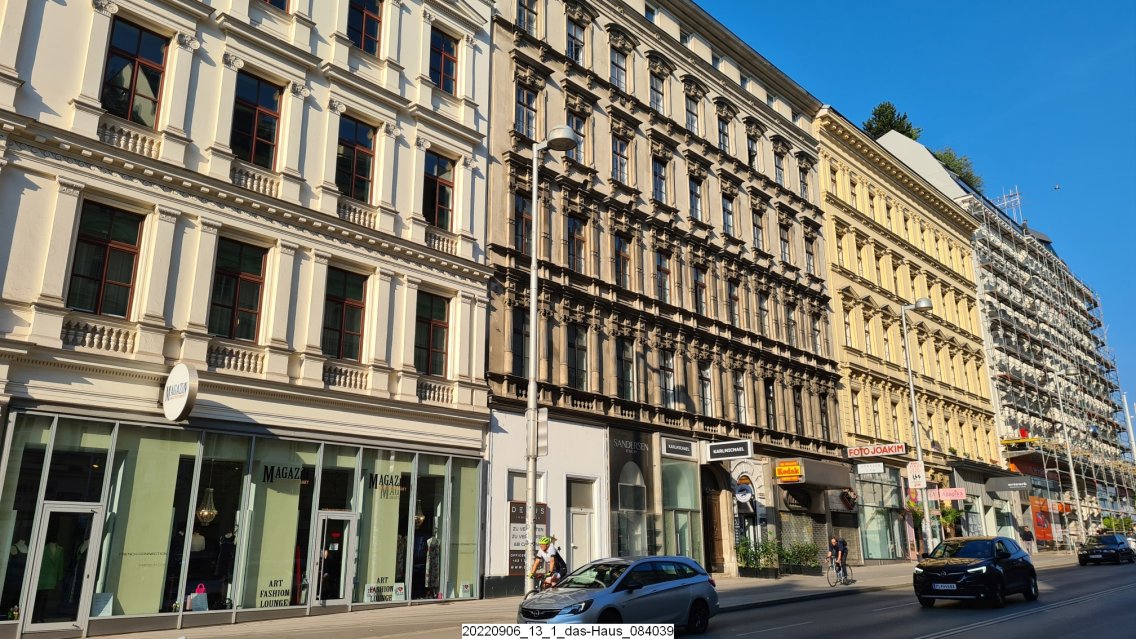 • einige gebührenpflichtige Parkplätze auf der gegenüberliegenden Straßenseite (= 1. Bezirk)