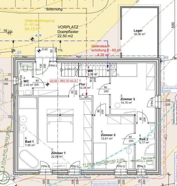 Das Objekt steht auf einem ca. 600m² großen Grundstück (leichte Hanglage) und hat eine Wohnfläche von 119,33m2. exkl. Lager (10m2)