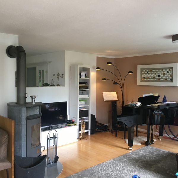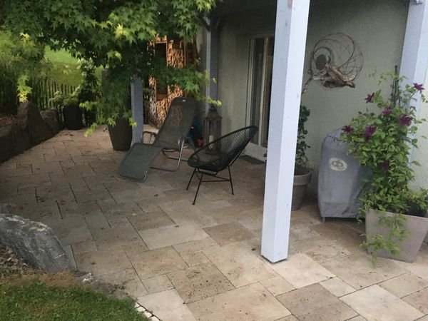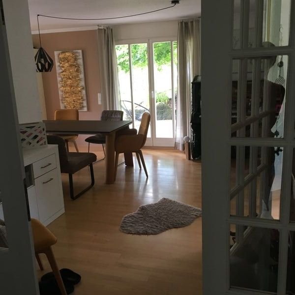 Die moderne 4-Zimmer-Wohnung liegt am Götznerberg und umfasst das gesamte EG eines Eckreihenhauses, das durch einen Durchgang von den anderen Reihenhäuser abgetrennt liegt. Also sind Fenster in alle Seiten und keine direkten Nachbarn rundum. Dank der guten erhobenen Lage am Südhang ist die 119 m2 große Wohnung ganzjährig sonnendurchflutet und sehr hell. Außen befindet sich ein der Wohnung zugehöriger privater Garten mit 250 m2, der eine 70 m2 große Terrasse (Süd- und westseitig ums Haus herum) mit Natursteinboden beinhaltet. Der gesamte Garten wurde 2017 komplett neu angelegt und bepflanzt.