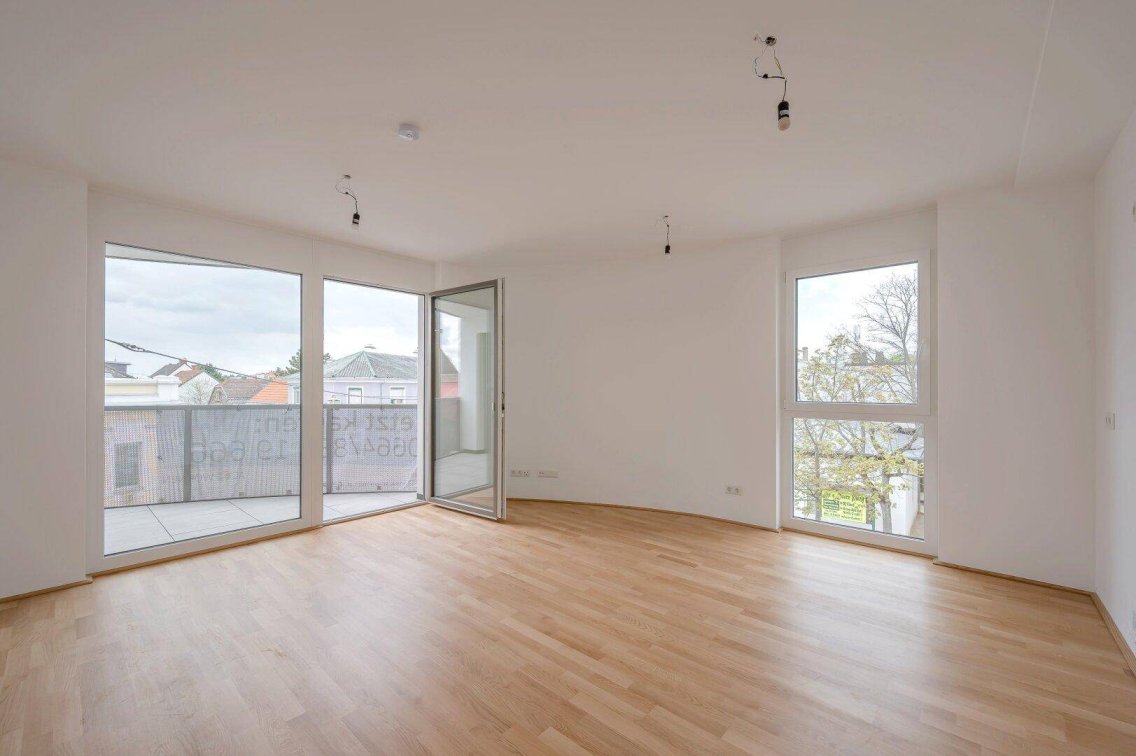 Bereits vermietete Vorsorgewohnung sichern!In unmittelbarer Nähe zum Bahnhof – Ecke Strassergasse 1 und Wiener Straße – haben wir ein Niedrigenergiewohnhaus mit achtunddreißig Wohnungen und einer Anwaltskanzlei im Dachgeschoß gebaut. Durch die hellen Sandtöne der Fassadengestaltung und das lichtdurchflutete Stiegenhaus erscheint das moderne Haus besonders freundlich. Die extensive Begrünung auf den Dächern sorgt für angenehme Temperaturen im Sommer, im Innenhof des Obergeschoßes lädt sie außerdem zum Erholen ein. Die Wohnung ist von September 2024 bis August 2027 zum Monatsmietzins von € 600,50 + MwSt. wertgesichert vermietet. Was Top 19 zur perfekten Vorsorge für Ihre Zukunft macht?Raumaufteilung und Ebene(n) 2. OG | ca. 57 m² Wohnnutzfläche | ca. 5 m² Loggia | 2 ZimmerWohnzimmer mit Küche, ein Schlafzimmer, Ankleideraum, Vorraum, Abstellraum, Bad, getrenntes WCKfz-Stellplatz in der TG Fahrrad- und Kinderwagenabstellraum im EGKellerabteil (1,88 m²) im EG Müllraum im EGSchlüsselfertig und provisionsfrei inklusive Kfz-Stellplatz, Kellerabteil und Erstvermietung