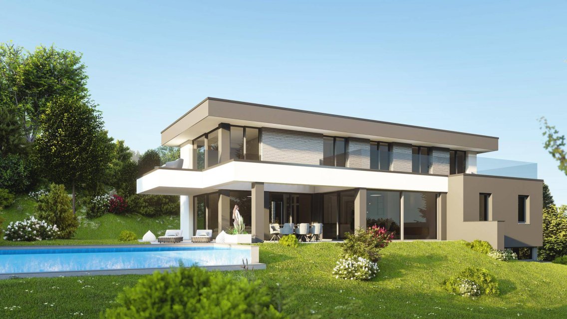 Ein einzigartiges Haus wird hier mit viel Liebe zum Detail und Perfektion errichtet. Schlichte Eleganz in Kombination mit raffinierter Planung und die Verwendung hochwertiger Materialien suchen Ihresgleichen. Die Ziegelmassiv-Bauweise garantiert eine hohe Wertbeständigkeit sowie herausragenden Wohnkomfort. Die Wand- und Decken-Oberflächentemperatur beeinflusst das Raumklima ganz entscheidend. Im Erdgeschoss geht der lichtdurchflutete, über 80 m² große Wohnbereich mit integrierter Küche und Essbereich nahtlos in die Terrasse über, wo ein stylischer und beheizbarer Infinity-Pool zum Abtauchen einlädt. Ein großzügiger Garten beschert Ihnen in jeder Jahreszeit viele Stunden der Entspannung. Ebenfalls auf dieser Ebene befinden sich ein Gästezimmer, Bad mit Dusche sowie ein Gäste-WC. Die Master-Suite im Obergeschoss inkludiert ein Bad en-suite, ein WC sowie eine Garderobe und einen eigenen Balkon. Den beiden weiteren Schlafzimmern steht ein zusätzliches Badezimmer zur Verfügung. Das großzügig geplante Untergeschoss bietet genügend Platz für einen Fitness-Wellness-Bereich, Haustechnik, Waschküche und Stauraum. Hier befindet sich auch die Doppelgarage. Das Angebot umfasst weiters intelligente Haustechnik inklusive einer Lüftungsanlage mit Wärmerückgewinnung sowie Deckenkühlung, Holz/Alufenster mit 3-fach Isolierglas, Raffstore, eine Vaillant Wärmepumpe mit Tiefensonden für Fußbodenheizung und Warmwasseraufbereitung, eine Photovoltaikanlage, ein KNX-Bussystem für die Steuerung der Beschattung, einen Heizkamin mit 3-seitiger Verglasung, einen Lift mit drei Stationen und eine Lamellendach-Terrasse mit automatischer Steuerung.