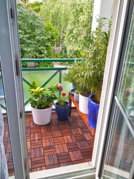 Wohnzimmer, Balkon sind westseitig ausgerichtet und haben natürliches Licht bis in die Abendstunden. Der Balkon bietet den Blick in die schönen Gärten der Anlage und hat als Gegenüber ausschließlich "grün".