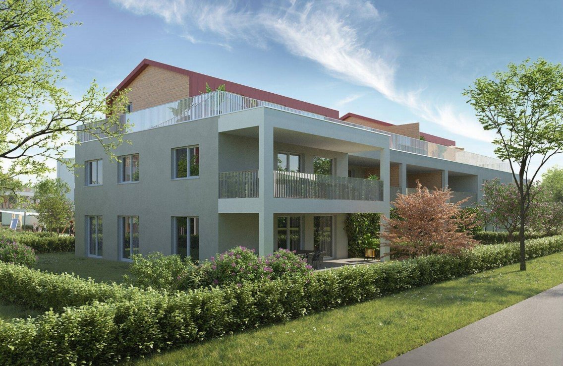 Das gesamte Quartier ist verkehrsberuhigt, dennoch kann das Auto bequem in Wohnungsnähe bzw. unter den Gebäuden geparkt werden. Das hat wiederum einen ökologischen Aspekt, da wir durch diese Maßnahme die Bodenversiegelung minimieren können. Dafür sorgt auch ein Maximum an Begrünung der Außenflächen.20 Wohneinheiten in schlüsselfertiger Ausführung. Überdachte Autoabstellplätze zu je 14.360 EUR zukaufbar.