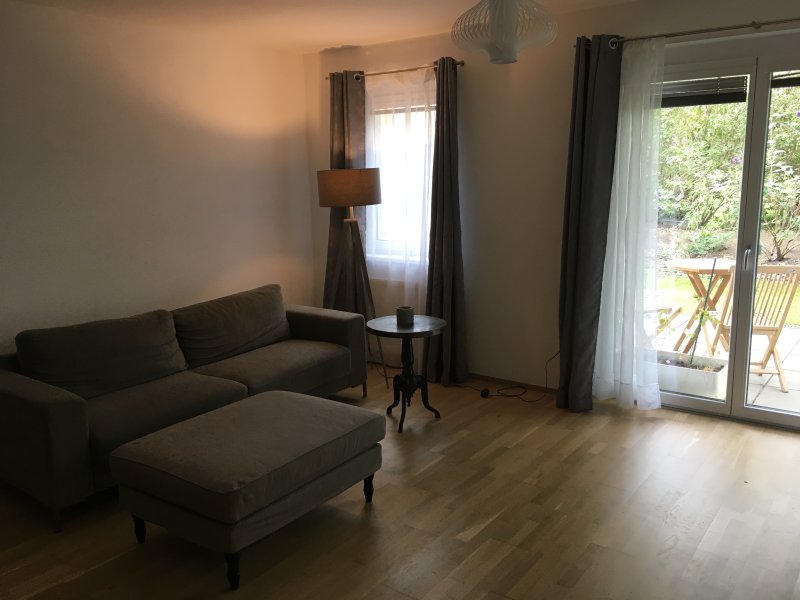 Sehr gepflegte Gartenwohnung, 10 Min fußläufig zum Bahnhof,DAN Einbauküche, Parkett/Laminat,Garten 76m2.Großer Wohnküchenbereich,Schlafzimmer,Abstellraum,Bad und WC gefliest,Badewanne,Keller