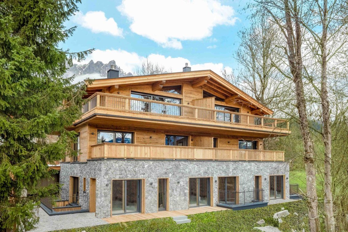 Dieses hochwertige Chalet-Apartment ist nach Süden und Osten ausgerichtet und bietet von der sonnigen Dachterrasse einen unverbauten Panoramablick auf die majestätische Kitzbüheler Bergwelt.