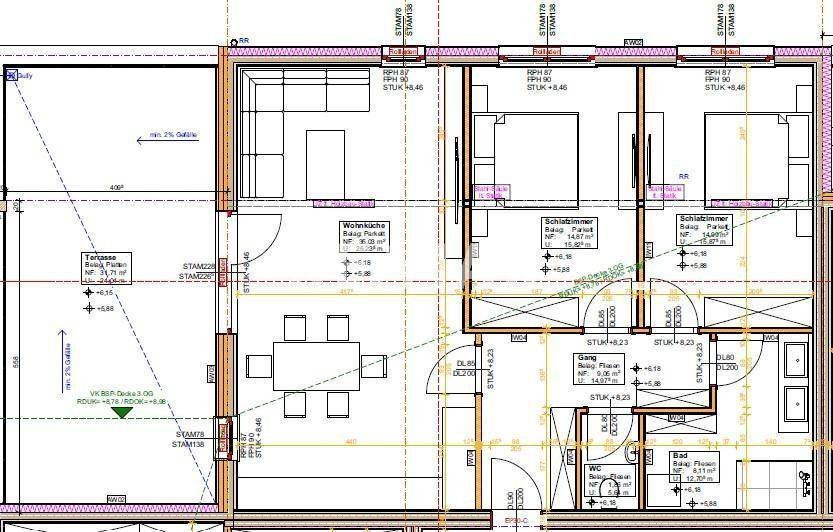 Die hier angebotene Wohnung "Top 11" befindet sich im 2. Obergeschoss und bietet auf ca. 80m² Wohnfläche mit Diele, Vorraum, Badezimmer, WC extra, großzügigen und hellen Wohn- Ess- Küchenbereich sowie 2 Schlafzimmern ein perfektes Wohnambiente. Eine ca.32m² große Terrasse bietet zusätzlichen Freiraum.