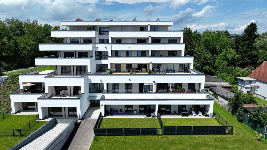 Die 2-, 3- und 4-Raum Wohnungen besitzen eine Wohnfläche zwischen 57 und 120 m². Jeder Wohneinheit ist eine Freifläche in Form von einer Loggia und einer großzügigen Terrasse zugeordnet. Die Erdgeschoßwohnungen bzw. Gartengeschoßwohnungen haben darüber hinaus einen Eigengarten. Eine Tiefgarage bietet ausreichend Stellplätze und die Wohnungen sind barrierefrei mit dem Lift erreichbar.