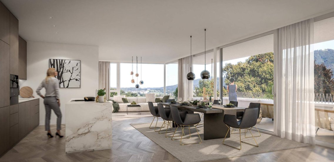 Größer denken. Das beginnt in den Schlosspark-Residenzen auf den großzügigen Balkonen und Terrassen, die einen einzigartigen Blick auf die Bergwelt um den Traunsee und ins Grüne bieten. Und das alles mitten im Zentrum und trotzdem in ruhiger Lage. Der richtige Ort, um sich ein gemütliches Gläschen zu gönnen und sich den nächsten Tag in der Traumwohnung auszumalen!