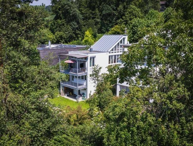 Dieses exklusive Einfamilienhaus besticht durch seine privilegierte Lage mit einem unverbaubaren Blick über die Dächer von Dornbirn, über das Rheintal bis zum Bodensee.