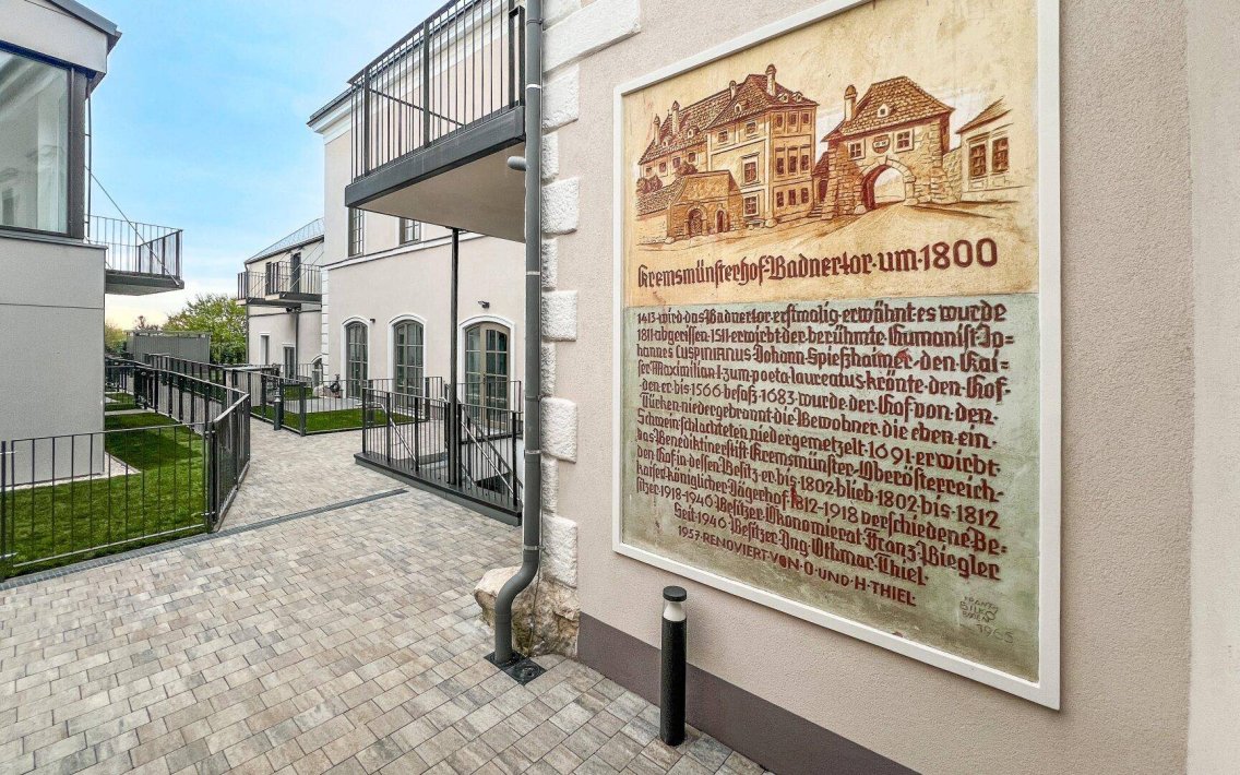 Vergangenheit trifft Moderne Inmitten des traditionsreichen Weinorts Gumpoldskirchen umgeben von prächtigen Weingärten wurde der historische Kremsmünsterhof revitalisiert.Hier entstanden acht luxuriöse Eigentumswohnungen, die dem architektonischen Erbe aus historischen Zeiten neues Leben einhauchen. Besonderer Fokus wurde dabei auf den Erhalt der ursprünglichen Bausubstanz gelegt. Gleichzeitig wurde das Gebäude zeitgemäß interpretiert, auf den neuesten Stand der Technik gebracht und mit modernem Design versehen. Das Projekt ist ein lebendiges Zeichen für die gelungene Symbiose aus vergangener Tradition und modernem Luxus.Highlights:8 moderne Wohnungen1 ebenerdiges Geschäftslokal3-4 Zimmer mit 84 - 213 m²10 PKW-Stellplätze in der hauseigenen TiefgarageWellnessbereich mit Designer-Sauna im GewölbekellerWeinkeller im Gewölbekellernachhaltige Pellets-HeizungGarten, Terrassen und Balkoneidyllische Grünruhelageattraktive Raumhöhen bis zu 4,19 mLage