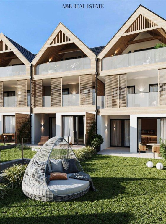 Auf dieser Ebene erleben Sie den wahren Luxus des offenen Wohnens. Der Eingangsbereich führt in einen eleganten Flur (4,16 m2), von dem aus Sie die moderne Küche (13,45 m2) erreichen. Die Küche, ausgestattet mit hochwertigem Parkett, bietet nicht nur Platz für kulinarische Kreationen, sondern auch für gesellige Kochabende. Das Herzstück dieser Etage bildet der großzügige Wohn- und Essbereich (52,11 m2), in dem natürliches Licht durch bodentiefe Fenster strömt und eine einladende Atmosphäre schafft. Die angrenzende Terrasse (17,96 m2) und der private Garten (49,21 m2) laden zu entspannten Stunden im Freien ein.Obergeschoss: