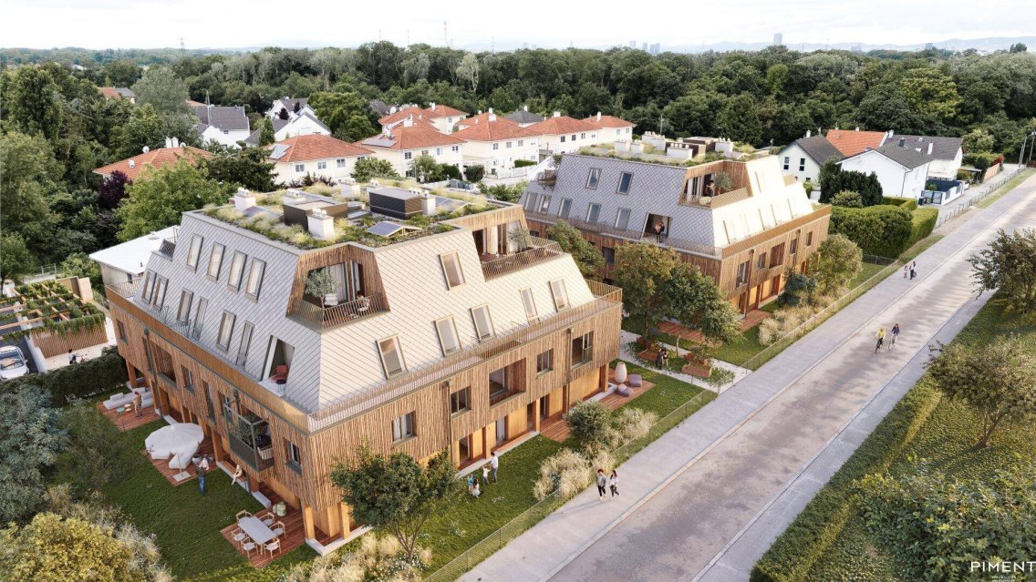 BEWUSST UND NACHHALTIG LEBEN IM URBANEN HOLZWOHNBAUIn einer Zeit, in der das Leben immer schneller und komplexer wird, bieten wir Ihnen mit SLOW HOME einen Ort der Entschleunigung. Hier können Sie den Stress des Alltags hinter sich lassen und zur Ruhe kommen. Unser Konzept des Slow Living setzt auf einen ganzheitlichen Lebensstil, der Achtsamkeit und Nachhaltigkeit in den Mittelpunkt stellt.Holz als zentrales ElementDie zwei solitären Baukörper sind klar strukturiert und umschließen einen allgemein genutzten Zwischenraum. Nachhaltigkeit steht bei uns nicht nur auf dem Programm, sondern spiegelt sich auch in der Bauweise wider. Die Holzfassade verleiht den Gebäuden eine warme und einladende Ausstrahlung.DER GARTEN ALS TREFFPUNKTDer zentrale Gemeinschaftsgarten bietet nicht nur Raum für Begegnungen und Entspannung, sondern auch Platz für Urban Gardening: saisonal, regional und kommunikativ. Das „Garteln“ ergänzt unser Konzept zeitgemäßen Wohnens und lädt zum gemeinschaftlichen Pflanzen, Pflegen und Ernten ein. Die naturbelassenen Flächen und die harmonisch integrierten Gärten lassen Sie die Jahreszeiten und Zyklen der Natur spürbar erleben. Die Farbgestaltung orientiert sich an naturnahen Tönen, während die Holzfassade in den unteren Stockwerken durch eine Metallfassade bei den geneigten Wänden und Dachschrägen ergänzt wird. Innen dominieren weiß lackierte Holzoberflächen, die das naturnahe Ambiente unterstreichen.BESONDERHEITEN, RUND UM DEN HOLZBAUAusstattung: