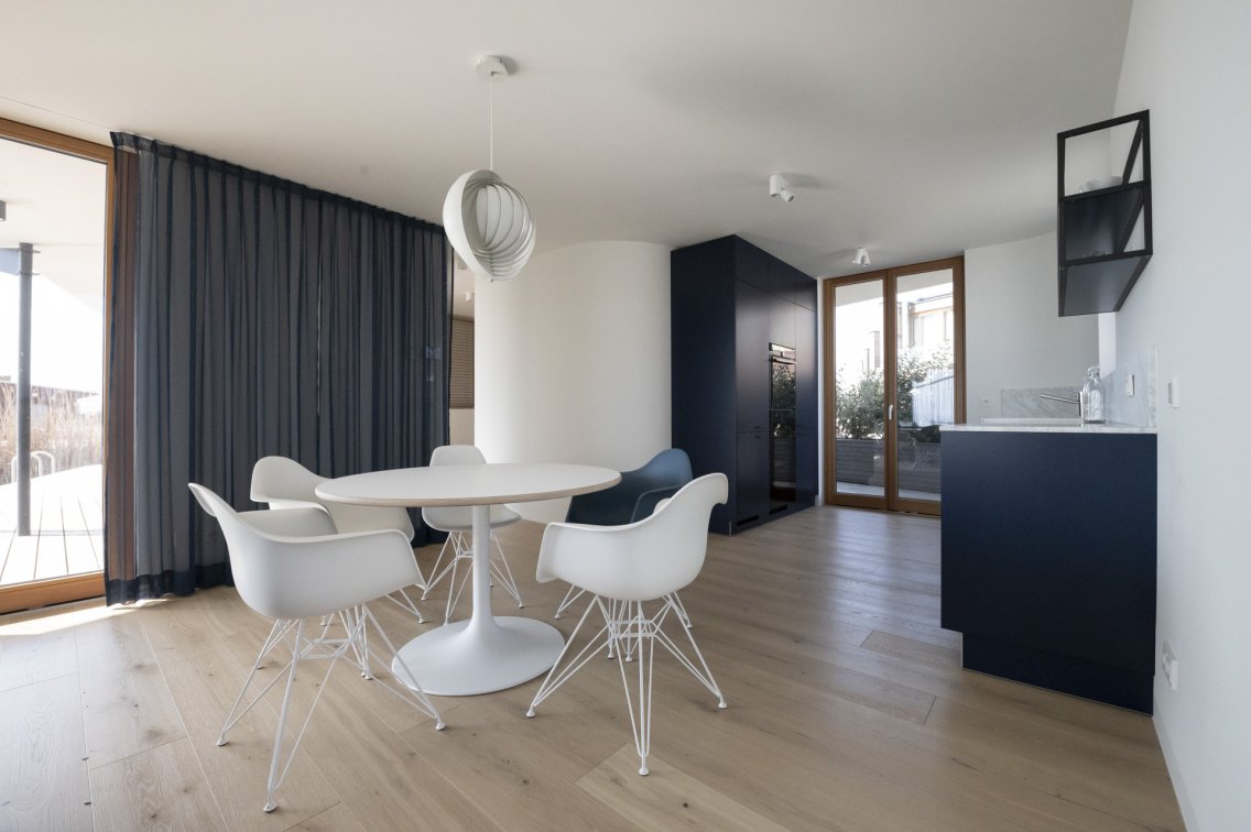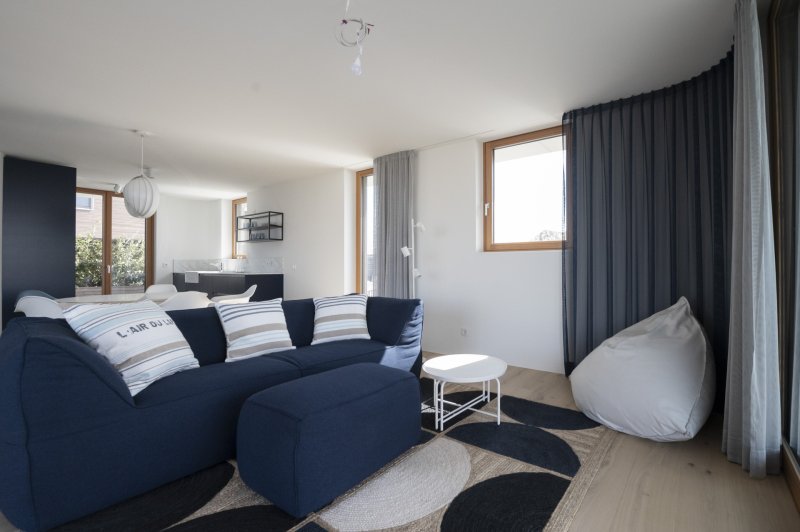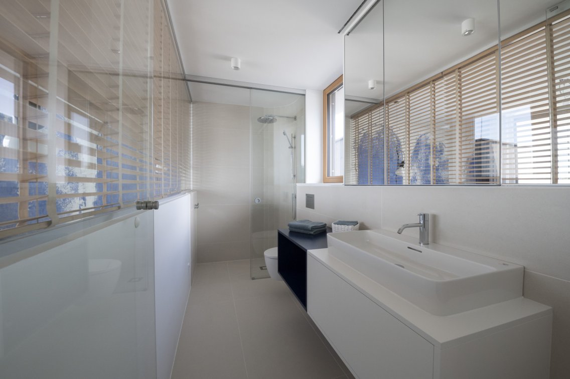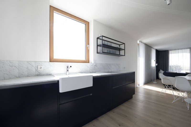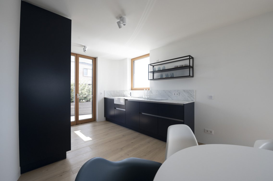 Das Haus überzeugt mit einem großzügigen Wohnbereich, der sich ideal mit der offenen Küche und dem Essbereich verbindet. Von dort haben Sie direkten Zugang zum Balkon. Der Innenbereich bietet außerdem genügend Raum für individuelle Gestaltungsmöglichkeiten.