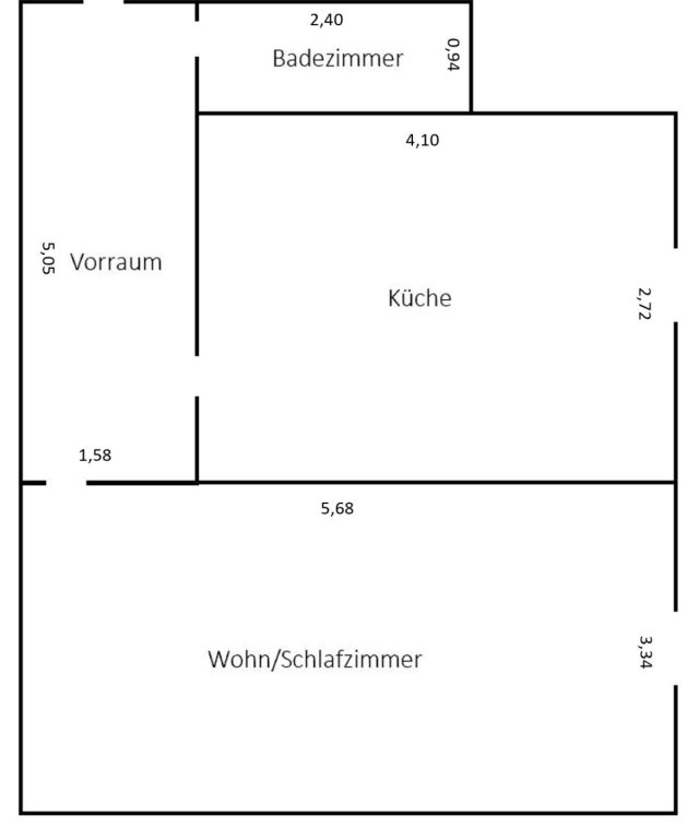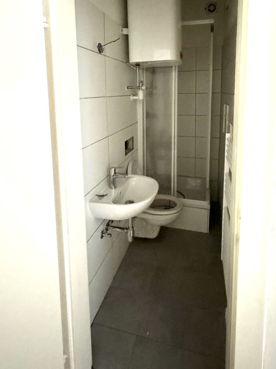 Die Wohnung überzeugt durch eine durchdachte Raumaufteilung und gliedert sich in einen Flur, eine Küche/Essbereich, ein Badezimmer mit WC und in ein Wohn-/Schlafzimmer.