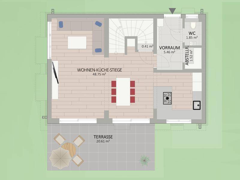 • Hochwertige Markenausstattung (Echtholzparkett, Innenstiege vom Tischler, Feinsteinzeug-Fliesen, Holz-Alu-Fenster mit 3-fach Isolierverglasung, uvm.)