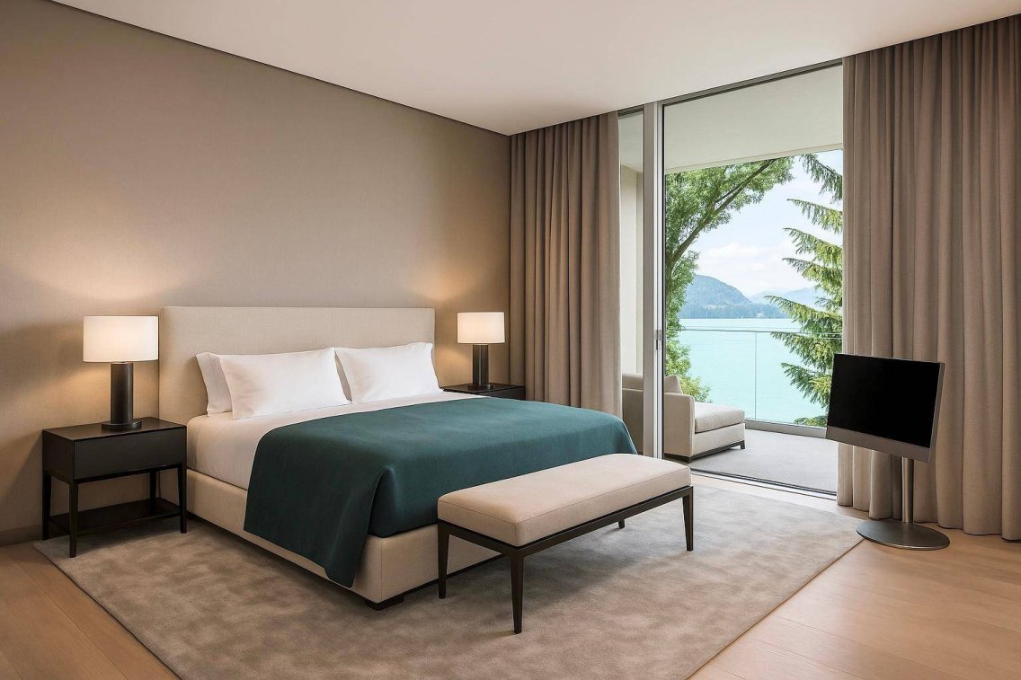 Das hochwertig ausgestattete Apartment besticht durch seine idyllische Lage im malerischen Parkareal des Schlosses Velden und durch seinen herrlichen Blick in die Veldener Bucht. Elegantes Mobiliar, exklusive Materialien und modernste Technik bieten allerfeinsten Wohnkomfort.