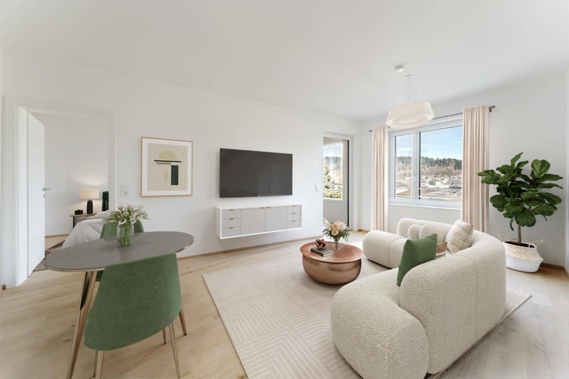 Die 2-4 Zimmer-Eigentumswohnungen teilen sich auf in Wohnungen im Erdgeschoss mit Garten oder Terrasse/Loggia, in den Zwischengeschossen Wohnungen mit Loggien/Balkonen/Terrassen und im Dachgeschoss eindrucksvolle Wohnungen mit Aussicht und begrünter Dachterrasse!
