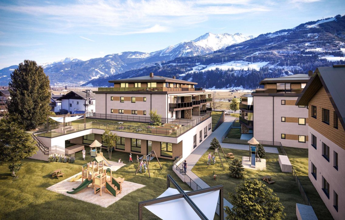 Im wunderschönen Piesendorf entstehen 3 mehrgeschossige Vollholz-Wohnbauten mit insgesamt 53 Wohneinheiten von ca. 42 m² bis 115 m² und integrierter Kinderbetreuungseinrichtung für 5 Gruppen. Als junge Familie oder werdende Eltern können Sie Ihre Kinder direkt vor Ort betreuen lassen und haben so die Gewissheit, dass Ihr Nachwuchs in sicheren und angenehmen Räumlichkeiten betreut wird.