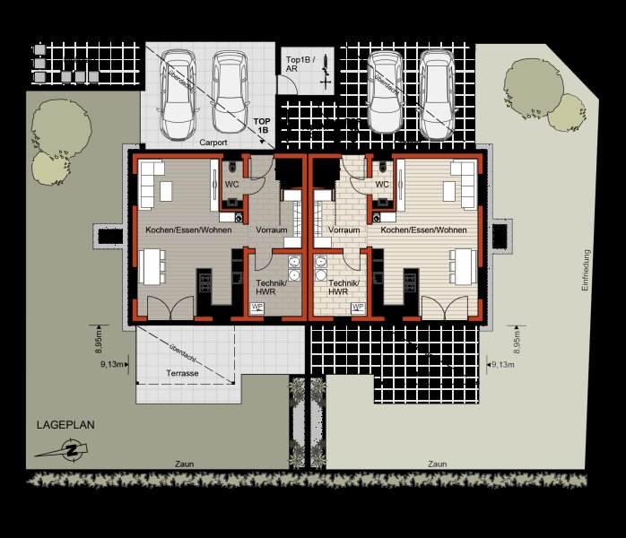 Doppelcarport massiv mit eigenem Außenabstellraum