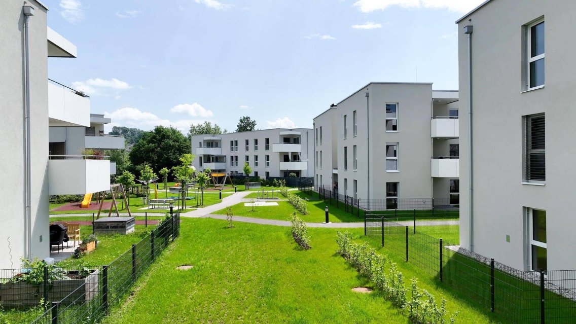 Die Wohnanlage besteht aus 5 Punkthäusern mit insgesamt 60 Wohnungen, 76 Stellplätzen in der Tiefgarage und 54 Stellplätzen im Freien. Nach dem ersten Bauabschnitt werden nun im zweiten Bauabschnitt die restlichen Häuser 4 und 5 mit insgesamt 24 Wohnungen errichtet. Die Baukörper sind dreigeschoßig und nach Süden ausgerichtet. Durch die Situierung ergeben sich zu den einzelnen Gebäuden zugeordnete Freiräume. Eine große kompakte Tiefgarage verbindet die Gebäude miteinander.