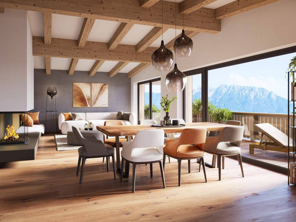 Highlights der Penthouse-Wohnung:Durchdachte Raumaufteilung: Der Grundriss sorgt für eine klare und funktionale Struktur, die jeden Quadratmeter optimal nutzt. Der großzügige Wohn- und Essbereich öffnet sich zu einer beeindruckenden Panorama-Fensterfront, die viel Tageslicht hereinlässt und einen atemberaubenden Blick auf das Kaisergebirge und das Unterinntal bietet.Individuelle Gestaltungsmöglichkeiten: Dieses Penthouse bietet Ihnen die Möglichkeit, Ihre persönlichen Wohnideen zu verwirklichen. Vom Bodenbelag bis zu den Details im Innenausbau können Sie viele Elemente nach Ihren Wünschen mitgestalten und so ein Wohnambiente schaffen, das ganz Ihren Vorstellungen entspricht.Exklusive Ausstattung und Materialien: Hochwertige, handverlesene Materialien unterstreichen das moderne und elegante Ambiente der Wohnung. Jede Fläche und jedes Detail wurde sorgfältig geplant, um ein Maximum an Komfort und Stil zu bieten.Traumhafte Lage: Niederndorf ist ein idealer Rückzugsort mit unmittelbarer Nähe zur Natur und dennoch guter Anbindung an Kufstein und Deutschland. Genießen Sie die Ruhe und Schönheit der Umgebung und die exklusive Lage am Berghang in einer Sackgasse mit herrlichem Ausblick.