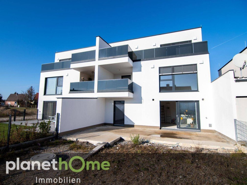 Belagsfertige Erdgeschoss-Neubauwohnung im Eigentum mit Terrasse, Garten, 2 Stellplätzen und einem Lagerabteil, errichtet in einem dreigeschossigen Wohnbau mit gesamt 6 Wohneinheiten.