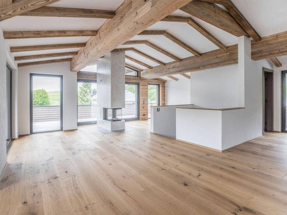 Dieses exklusive Maisonette-Penthouse im Neubau bietet höchsten Wohnkomfort und atemberaubenden Bergblick. Auf großzügigen Terrassenflächen können Sie die Natur genießen und entspannte Stunden verbringen. Der offene Kaminfeuerbereich schafft eine gemütliche Atmosphäre, während der beeindruckende Sichtdachstuhl aus Altholz den Raum mit Charme und Wärme erfüllt. Die hochwertigen Materialien und die durchdachte Architektur machen diese Wohnung zu einem einzigartigen Wohnjuwel. Ein luxuriöses Zuhause, das modernen Stil mit zeitloser Eleganz