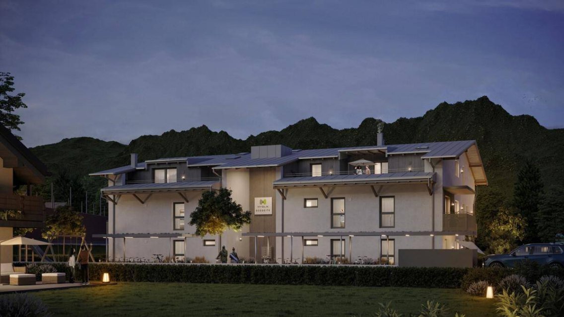 Mit einer eleganten Holzfassade fügt sich das Haus harmonisch in die Umgebung ein. Bodentiefe Fenster holen die umliegende Bergwelt direkt in Ihr Wohnzimmer. Sonnige Terrassen und private Gärten sorgen für zusätzlichen Wohnraum im Freien. Das Gebäude ist barrierefrei zugänglich und ein Lift verbindet alle Stockwerke.