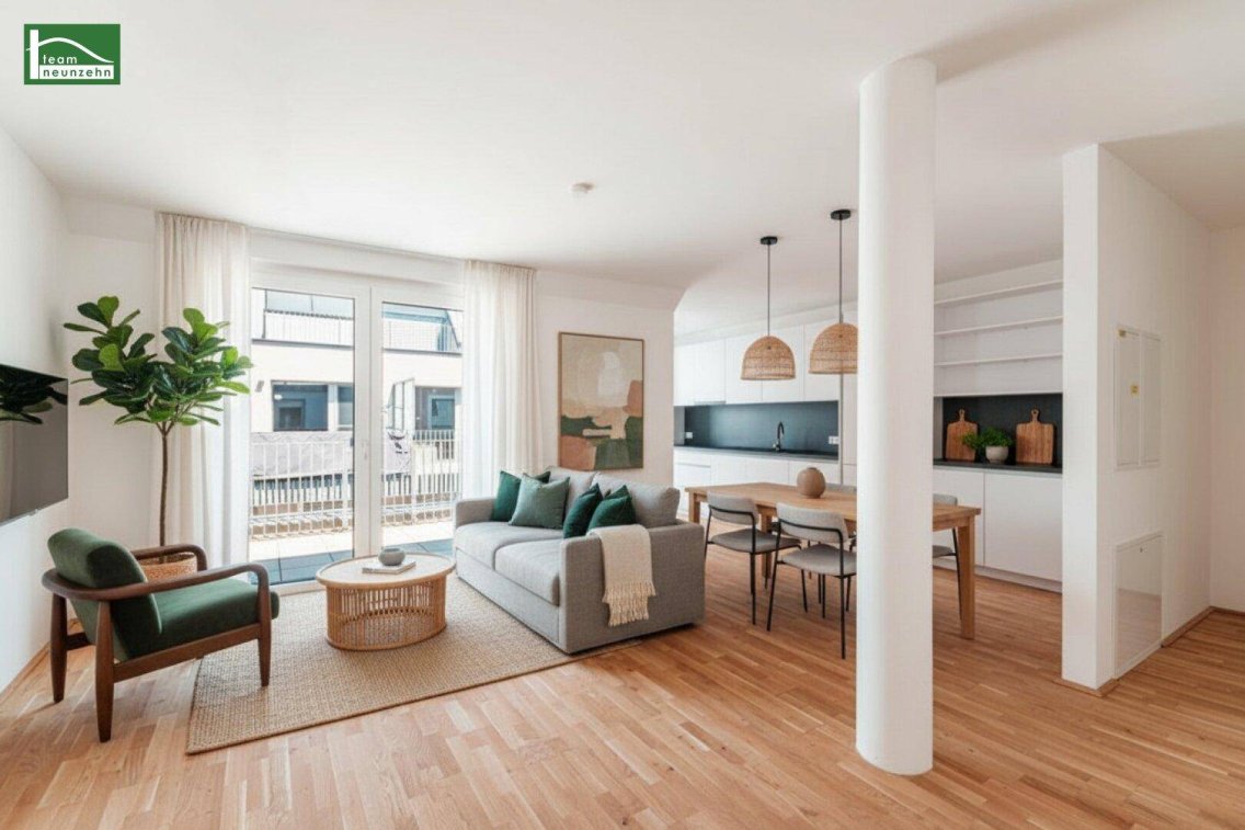 Wohntraum mit Küche auf Eigengrund in hervorragender Lage (U1 und Nähe Alte Donau) mit energieeffizienter Erdwärme In ausgezeichneter Lage des 22.Bezirks – in unmittelbarer Nähe zur U-Bahn-Linie U1 und somit mit einer hervorragenden Anbindung an die Wiener Innenstadt sowie die Alte Donau – wurde dieser moderne Neubau realisiert. Die Wohnungen sind sofort beziehbar und kommen als Erstbezug inkl. hochwertiger Küchen zum Verkauf.Als besonderes Highlight ist die Lage auf einen Eigengrund zu erwähnen. Eine Rarität in diesen Lagen, da hier meist lediglich Baurechtsgründe zur Verfügung stehen.Bei der Realisierung der Liegenschaft wurde ein hoher Wert auf die Energieeffizienz gelegt. Somit wurde hier eine Sole-Wärmepumpe mittels Tiefensonden (Erdwärme) in Verbindung mit einer PV-Anlage berücksichtigt. Demnach können Sie auch im Sommer über die „Fußbodenleitungen“ die Wohnung temperieren. In den DG-Wohnungen wurde die Vorbereitung für eine Klimaanlage vorgesehen.Die Lage ist sowohl bei Jung und Alt absolut begehrt. Hier trifft Land auf Stadt - Grün auf Urban. Sie entscheiden, ob Sie einen entspannten Spaziergang entlang der Donau auskosten oder direkt mit der U-Bahn am Stephansplatz aussteigen und die Vorzüge der Wiener Innenstadt genießen möchten – in wenigen Minuten stehen Ihnen beide Möglichkeiten zur Verfügung.Highlights: Eigengrund – eine Rarität in diesen LagenErstklassiges Wohnerlebnis in einem sofort beziehbaren Erstbezugs-Neubauhervorragende Infrastruktur und Nahversorgung – unmittelbare Nähe zur U1 – Kagraner Platz / Alte Donaumoderne und hochwertige Ausstattung mit energieeffizienter Sole-Erdwärme Heizung und Kühlung inkl. PV-Anlagen sowie KüchenPKW-Stellplätze in der hauseigenen Tiefgaragedurchdachte Grundrisse mit geräumigen Freiflächen – ideal für Familien, Paare und SinglesAusstattungsstandard:Bei der Realisierung des Neubaus wurde folgende hochwertige Ausstattung ausgeführt:Vollwärmeschutzfassade (geringer Heizwärmebedarf = geringe Heizkosten)Liftvollausgestattete KücheFußbodenheizung inkl. Temperierung/Kühlung im Sommer (betrieben als Zentralheizung über eine energieeffiziente Erdwärme-Anlage)PV-Anlage3-fach isolierverglaste Kunststoff-/Alufensterelektrischer Sonnenschutz mit Raffstores Parkettboden großformatige Fliesen 30x60cm (in den Nassbereichen)hochwertige Sanitäreinrichtung Sicherheitseingangstüre Klimaanlagenvorbereitung im DGKellerabteileFahrradabstell- und KinderwagenraumTiefgaragenstellplätzeWohnung Top 10Die drei Zimmer Wohnung umfasst ca. 73,70 m² und befindet sich im ersten Dachgeschoß mit nördlicher Ausrichtung.Vorraum: 10,98 m²WC: 2,10 m²Bad: 5,42 m²Abstellraum: 2,54 m² Wohnküche: 25,14 m²Zimmer 1: 16,41 m²Zimmer 2: 11,11 m²Terrasse: 8,79 m²Einige Bilder des Inserats wurden zum Zweck der besseren Visualisierung digital mit KI möbliert. Die Wohnung wird unmöbliert übergeben. Kaufpreis:Der Kaufpreis beläuft sich für Eigennutzer auf 479.000,00 € und für Anleger auf 425.900,00 € zzgl. 20% Ust.Ein Tiefgaragenstellplatz kann zu einem Preis von 28.155,00 € (Anleger: 25.000,00 € Netto zzgl. 20% Ust.) erworben werden.Vermittlungsprovision 3% (zzgl. 20% USt)Infrastruktur:Auf Grund der unmittelbaren Lage direkt beim “Kagraner Platz” und somit auch zur U-Bahn U1 – Kagraner Platz sowie der sehr guten Erreichbarkeit der “Alten Donau” (nur 2 U-Bahn-Station entfernt), handelt es sich hierbei um eine der begehrtesten Wiener Lagen. Für Sportbegeisterte steht zusätzlich zu den Flächen rund um die Alte Donau auch die “Steffl Arena” ums Eck zur Verfügung. Zwei Fitnessstudios sind ebenso fußläufig zu erreichen. Die UNO-City, das VIC (Vienna International Center) sowie der DC-Tower sind in wenigen U-Bahn-Stationen zu erreichen.Durch die tolle öffentliche VerkehrsanbindungU1 – “Kagraner Platz”Straßenbahn 25, 26Buslinie 22A, 24A, 27A, 31Aerreichen Sie auch das Stadtzentrum von Wien (Stephansplatz, Schwedenplatz, Praterstern uvm.) in wenigen Augenblicken.Die Nahversorgung ist durch das Einkaufszentrum "K1" sowie das rasch erreichbar Donauzentrum hervorragend. Hier stehen Ihnen von Supermärkten, Shops, Apotheken, Restaurants, Cafés, Sporteinrichtungen, Ärzte u.dgl. alles zur Verfügung. Einige Supermärkte (z.b. Billa) befinden sich nahezu ums Eck - somit fehlt es Ihnen hier an nichts.Dank der Nähe zu Schulen, einem Kindergarten und der Veterinärmedizinischen UNI Wien ist die moderne Wohnanlage auch für Familien ein idealer Wohnort. Die kulinarischen Wünsche werden durch zahlreiche Restaurants in unmittelbarer Nähe abgedeckt.Energieausweis:Der Energieausweis beläuft sich auf 29,08 kWh/m²a, welcher der Klasse B entspricht. (FGEE: 0,69 – Klasse A+)Für Fragen bzw. Besichtigungen steht Ihnen Herr Benjamin Pippan sehr gerne unter pippan@teamneunzehn.at sowie unter [Telefonnummer entfernt] zur Verfügung.Wir weisen darauf hin, dass zwischen dem Vermittler und dem zu vermittelnden Dritten ein familiäres oder wirtschaftliches Naheverhältnis besteht."Leben braucht Raum" * T19-RE Real Estate GmbH & Co KG * www.teamneunzehn.atDoppelmaklerWir werden als Immobilienmakler kraft bestehenden Geschäftsgebrauchs als Doppelmakler tätig und haben sohin beide Seiten des Vertrages (Verkäufer-Käufer, Vermieter-Mieter) zu unterstützen.Wirtschaftliches NaheverhältnisEs wird bekannt gegeben, dass folgendes wirtschaftliches Naheverhältnis zwischen der teamneunzehn-Gruppe und dem Verkäufer/der vermietenden Partei besteht: ständige und dauerhafte Beauftragung mit der Vermittlung des bestehenden ImmobilienportfoliosHaftungserklärung zum InseratIrrtum und Änderungen vorbehalten! Sofern es sich bei Bildern um Visualisierungen handelt, können Abänderungen zur tatsächlichen Ausführung resultieren. Wir weisen ausdrücklich darauf hin, dass das auf Fotos oder Visualisierungen ersichtliche Mobiliar bzw. Inventar nicht Bestandteil des inserierten Preises ist.