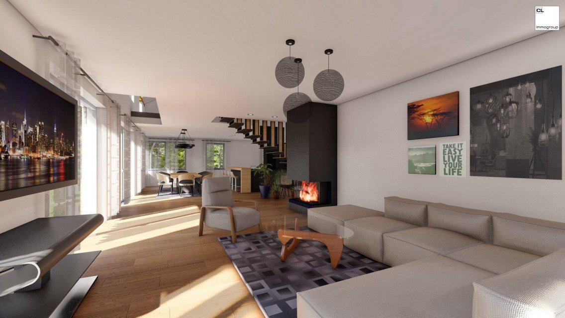Upon entering, the extraordinary character of this house reveals itself: The open-plan living area on the ground floor unites kitchen, dining area, and living room into a stylish center of the house. The elegant kitchen in dark tones is fully equipped and, with a sophisticated stone countertop, a wooden wine rack, and a wine fridge, is a true eye-catcher. Following is the light-filled dining area along the generous glass front, followed by the cozy living area with designer furniture. A fireplace provides cozy warmth on cold days!In the garden, there would be plenty of space for a swimming pool.Currently, the buyer could still influence the interior design, as the villa is in the construction stage. Completion is scheduled for the end of May 2026!*** Finden Sie ab sofort unsere Immobilien auch auf der Maklerplattform www.alleimmobilien.at ***Der Vermittler ist als Doppelmakler tätig.