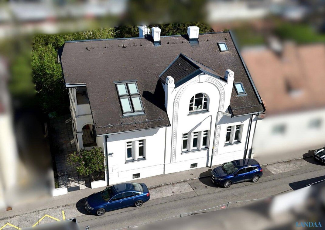 Ein Stil, der aus dem Rahmen fällt – genau das macht dieses Haus zu einem echten Highlight.JUGENDSTIL-VILLA MIT CHARME UND GESCHICHTEIm 23. Bezirk Wiens steht diese außergewöhnliche Jugendstil-Villa, die 1909 erbaut und zuletzt 2020 umfassend renoviert wurde. Auf einer Wohnfläche von 255 Quadratmetern, ergänzt durch 93 Quadratmeter Kellerräume, vereint sie historische Eleganz mit modernem Wohnkomfort. Das großzügige Grundstück umfasst 692 Quadratmeter, davon rund 500 Quadratmeter Gartenfläche mit altem Baumbestand, die für eine grüne und ruhige Wohnatmosphäre sorgen.Die Villa ist in zwei eigenständige Wohneinheiten unterteilt, die über separate Eingänge erreichbar sind. Dadurch eignet sie sich ideal für Mehrgenerationenwohnen oder eine Kombination aus Wohnen und Arbeiten. Die repräsentative Fassade ist mit Jugendstil- und neoklassizistischen Elementen verziert und unterstreicht den besonderen Charakter des Hauses.Das Dachgeschoss bietet ein beeindruckendes Wohnambiente mit großzügigen Raumhöhen von bis zu fünf Metern. Eine Galerie, großflächige Dachfenster und offene Wohnbereiche schaffen ein lichtdurchflutetes und modernes Raumgefühl. Die Etage umfasst ein zentrales Vorzimmer, vier separate Räume, darunter ein Schlafzimmer mit Balkon, eine offene Küche mit Essbereich für bis zu sechs Personen sowie ein exklusiv gestaltetes Badezimmer. Vom 38 Quadratmeter großen Wohnzimmer gelangt man auf eine 7,5 Quadratmeter große Veranda, die mit original erhaltenen Holzstuck- und Zierelementen begeistert. Hochwertige Materialien wie Nero-Marquina-Marmor, Bisazza-Glasfliesen und Holztäfelungen aus amerikanischem Nussbaum verleihen den Räumen eine edle Atmosphäre. Die Böden sind mit hochwertigem Eichen-Vollholzparkett ausgestattet.Das Erdgeschoss präsentiert sich in klassischem Altbau-Stil mit großzügigen, lichtdurchfluteten Räumen. Die fünf Zimmer sind mit Stuckdecken und Flügeltüren versehen, die Deckenhöhe beträgt 3,30 Meter. Ein neues Badezimmer mit moderner Walk-in-Dusche sowie eine Küche mit direktem Zugang zur Terrasse ergänzen das Wohnangebot. Durch die erhöhte Bauweise ist diese Etage von außen nicht einsehbar und bietet somit ein hohes Maß an Privatsphäre.Der Keller verfügt über eine Gesamtfläche von über 90 Quadratmetern und bietet vielseitige Nutzungsmöglichkeiten. Neben einem Wirtschafts- und Heizraum stehen vier separate Räume zur Verfügung. Einer davon ist beheizbar und eignet sich ideal als Fitness-, Wellness- oder Hobbyraum.Wir weisen darauf hin, dass zwischen dem Vermittler und dem zu vermittelnden Dritten ein familiäres oder wirtschaftliches Naheverhältnis besteht.Der Vermittler ist als Doppelmakler tätig.