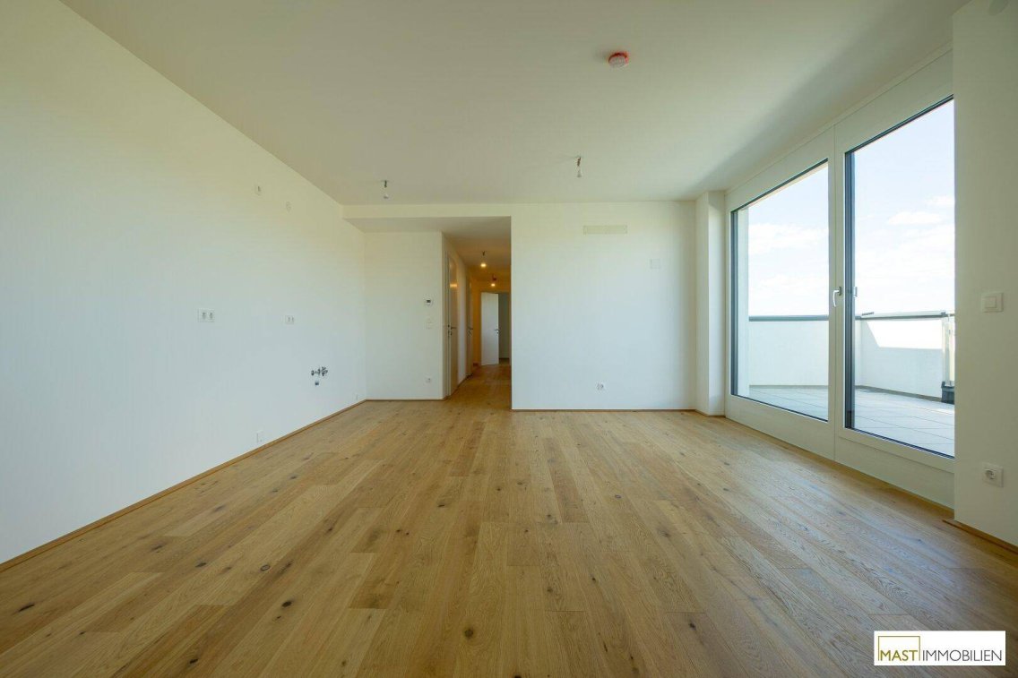Fragen Sie gerne nach unserem Immobilienfolder an, sämtliche Wohnungen auf www.mast-immo.atInmitten der grünen Weite des Weinviertels und doch in unmittelbarer Nähe zur Stadt Korneuburg entsteht ein Wohnbauprojekt, das modernes Wohnen mit ländlicher Ruhe auf ideale Weise verbindet. In Spillern, nur wenige Fahrminuten von Wien entfernt, realisieren wir 38 hochwertige Eigentumswohnungen – perfekt für Familien, Paare und Singles, die ein Zuhause mit Lebensqualität suchen.Wohnen im Grünen – mit allem, was das Herz begehrtDie Wohnungen sind zwischen ca. 43 m² und 90 m² groß und bieten durchdachte Grundrisse, helle Räume sowie großzügige Freiflächen wie Balkone, Terrassen oder Eigengärten. Die Ausstattung ist modern, hochwertig und auf ein langfristig angenehmes Wohngefühl ausgelegt.Highlights des Projekts:38 Wohneinheiten mit 2 bis 4 Zimmern (aufgeteilt auf 2 Trakte)Großzügige Balkone, Terrassen oder GärtenRuhige, grüne Lage nahe dem Naherholungsgebiet DonauauenFußläufige Anbindung an Bahn und NahversorgungHochwertige Ausstattung & nachhaltige BauweisePKW-Stellplätze optional erhältlich (zu je 15.000,-- €)Geplante Fertigstellung: 01.10.2025PhotovoltaikanlageRaumaufteilung: