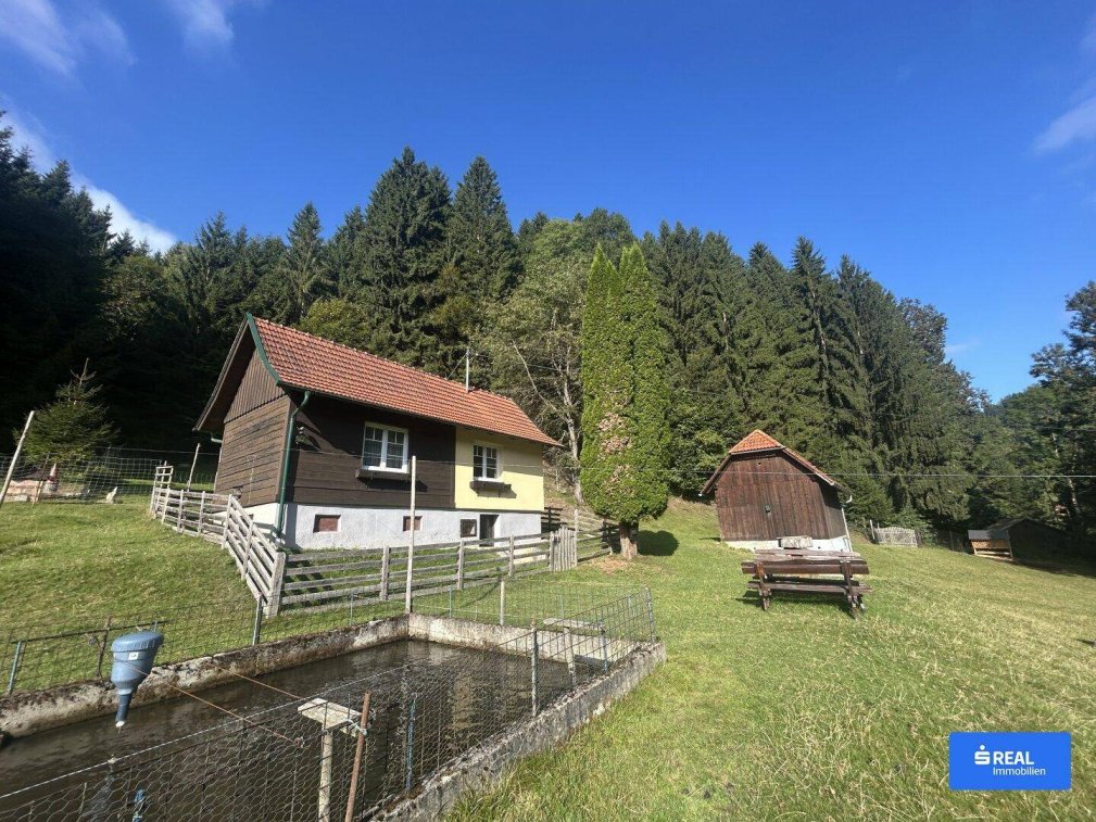 Genießen Sie Ihre Freizeit im Einklang mit der Natur. Diese einzigartige Liegenschaft ist der perfekte Rückzugsort für Naturliebhaber. Landidylle mit vielen Möglichkeiten!Lage: Wolfsberg / Nähe St. Michael - Alleinlage, das Stadtzentrum von Wolfsberg ist in ca. 10 Autominuten erreichbar. ca. 600 m SeehöheLiebevoll saniertes kleines Wohnhaus, welches sich ideal zur Nutzung als Wochenendhaus eignet, mit kleinem Stallgebäude und einem weiteren Nebengebäude, sowie insgesamt 7.684 m² Grund.Ebenso befinden sich am Grundstück 3 Fischteiche (ca. 80 Forellen) mit natürlichem Zulauf, sowie ein Wildgehege mit Rehen und Hirschen!Kaufpreis: EUR 198.000,--Bitte beachten Sie, dass dieser Liegenschaftskauf dem Genehmigungsverfahren nach dem Kärntner Grundverkehrsgesetz unterliegt. Eine ordentliche Bewirtschaftung und Pflege der landwirtschaftlichen Fläche und des Waldbestandes muss gewährleistet sein. Lt. §5 EAVG kein Energieausweis erforderlich (weniger als 50 m² Gesamtnutzfläche)!Hier sehen Sie nur eingeschränktes Informationsmaterial - für ausführliche Unterlagen (wie Liegenschaftsadresse, Grundrisspläne, umfangreiche Foto-Dokumentation, Lageplan, etc.) kontaktieren Sie bitte unverbindlich unser Büro.Bitte haben Sie Verständnis, dass wir aufgrund der Nachweispflicht gegenüber dem Eigentümer nur Anfragen mit vollständiger Anschrift und Telefonnummer beantworten können! Kaufnebenkosten:3,5% Grunderwerbssteuer1,1% GrundbucheintragungsgebührKaufvertragskosten3,6% (inkl. gesetzl. USt.) Vermittlungshonorar