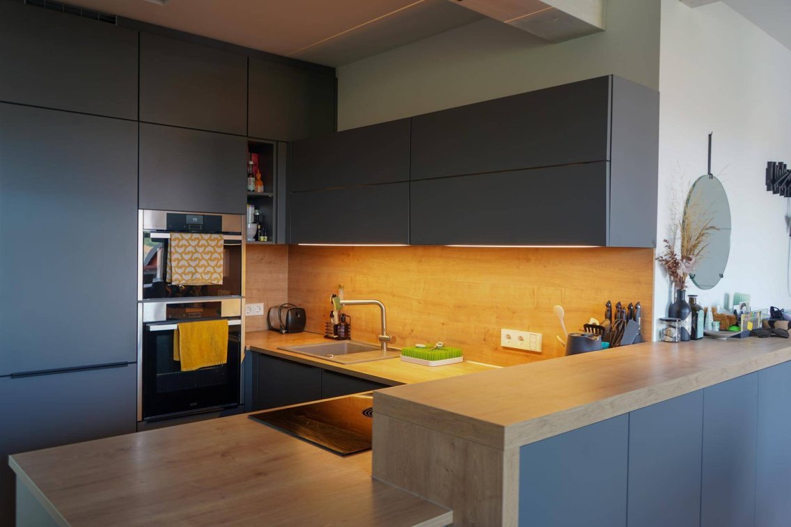 Die Wohnung ist knapp 70 m2 groß und teilt sich in zwei Schlafzimmer (eines davon habe ich als Wohnzimmer genutzt), sowie einen großen Küche-/Ess-/Arbeitsraum. Der Arbeitsplatz als auch die Küche inkl. langer Theke mit Stauraum wurden vom Tischler (Olina) eingebaut. Die Küche ist mit einem hochwertigen BORA Induktionsfeld ausgestattet. Kühlschrank, Geschirrspüler, Backrohr und Mikrowelle sind nicht verbaut. Der Arbeitsplatz ist ideal für Personen, die im Home Office arbeiten und sich ein komfortables Setup wünschen. Andernfalls kann der Bereich auch als Erweiterung der Küche genutzt werden.