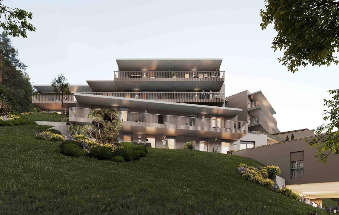Das Projekt umfasst insgesamt 25 Wohnungen, die sich entlang des Hanges verteilen. Die Terrassen der Anlage garantieren einen wunderbaren Blick und sonnige Stunden. Alle Wohnungen sind mit Freiflächen in Form von Terrassen oder Balkonen ausgestattet. Der Baukörper passt sich an die umgebende Topografie an und ermöglicht so auch in den oberen Geschoßen private Gartenflächen. Die Anlage punktet mit Wohnkomfort und hoher Qualität der Ausstattung: Echtholz-Parkettböden im gesamten Wohnbereich sowie großformatige Fliesen in den Bädern und WCs. Wärmedämmende 3-Scheiben-Isolierverglasung, ausreichende Stromanschlüsse und ein Personenaufzug runden dieses Angebot ab. Hervorzuheben ist ebenfalls, dass das angewandte Heizungssystem auch in den Sommermonaten eine sanfte Kühlung über die Fußbodenheizung ermöglicht.