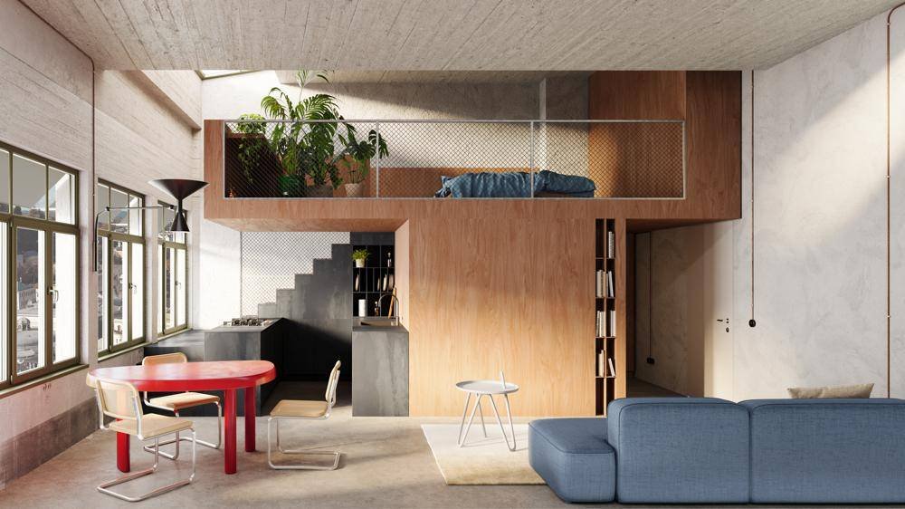 • 1-Raum-Konzept mit Split-Level – wohnen, arbeiten, leben ohne harte Grenzen