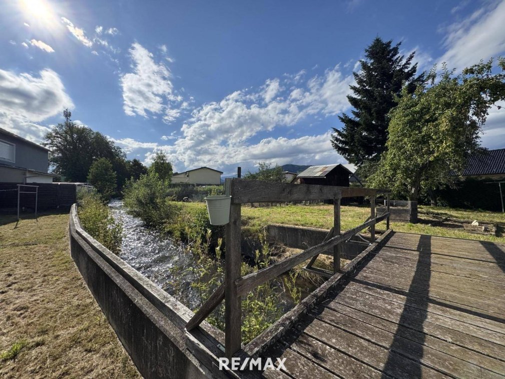 Hinter dem Gebäude erstreckt sich ein idyllisches Grundstück mit rund 850 m², das man in dieser Form mitten in der Stadt kaum vermuten würde. Über eine Brücke, die den angrenzenden Sachendorferbach überquert, gelangt man in eine grüne Oase, die vielfältige Nutzungsmöglichkeiten bietet – ob Obstgarten, Selbstversorgung, Hühnerhaltung oder einfach ein Ort der Erholung.