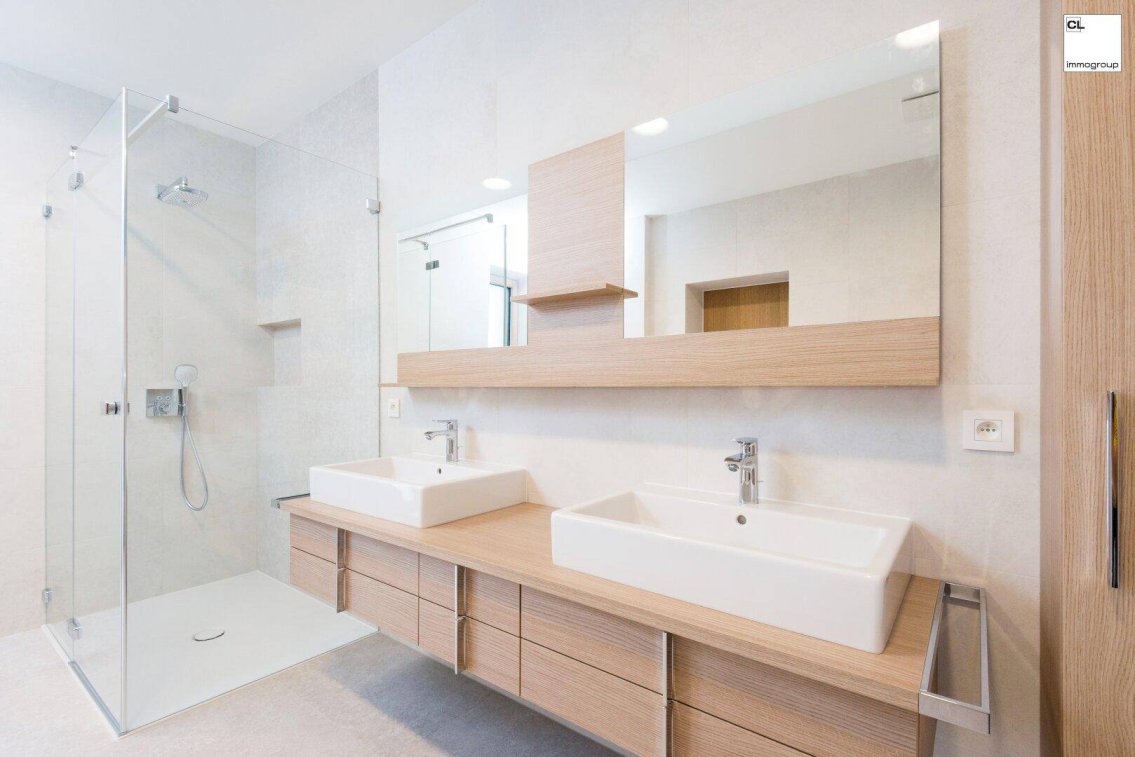 Auch ein modern angelegtes Badezimmer mit Dusche und Badewanne findet man hier.