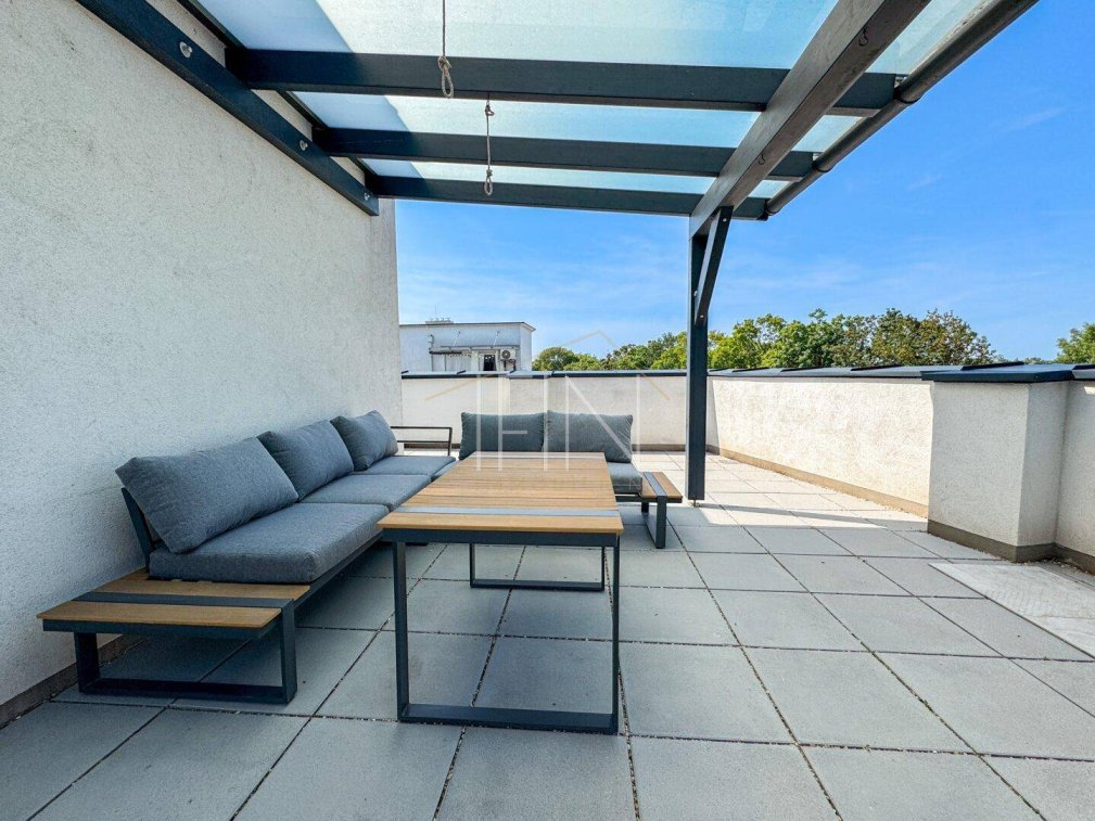 Penthouse-Feeling im Grünen – Ihr neues Zuhause mit Traumterrasse!Dachgeschoss + 50m² Terrasse + + 3 Zimmer auf gleicher Ebene + Stauraum mit Licht-Stromanschluss auf selber Ebene Endlich großzügig wohnen!In der begehrten Wohnanlage „Hasengarten“ erwartet Sie eine modern-ausgestattete 3-Zimmer-Wohnung, die mit außergewöhnlichem Freiraum verbunden ist.Auf der außergewöhnlich großen ca. 50m² Dachterrasse mit Ausrichtung in drei Himmelsrichtungen - genießen Sie morgens den Sonnenaufgang mit einer Tasse Kaffee, mittags ein entspanntes Homeoffice unter blauem Himmel und abends den Sonnenuntergang bei einem Glas Wein.Die offene Architektur, eine hochwertige DAN-Küche mit BOSCH-Geräten und geschmackvolle Details machen diese Wohnung zu einem Zuhause, in dem Sie sich sofort wohlfühlen.Ob Paare mit Homeoffice oder Familien mit Platzbedarf – hier finden Sie den perfekten Rahmen für Ihren Lebensstil.Ein echtes Highlight für Ordnungsliebhaber: Der großzügige Abstellraum direkt auf derselben Etage (7,81 m²) - mit eigenem Licht- und Stromanschluss - ideal als praktischer Stauraum.Zur RaumaufteilungVorraum mit GarderobenschrankGroßer Wohn-/Essbereich mit direktem Zugang zur Terrasse