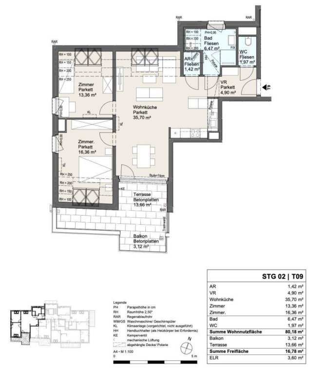 Stg. 2 Top 09 | 3 Zimmer | ca. 80 m² + ca. 17 m² FreiflächeDie ca. 80 m² große Wohnung befindet sich im 2. Liftstock und verfügt über eine großzügige Wohnküche mit direktem Zugang zur ca. 17 m² großen Außenfläche (ca. 14m² Terrasse + ca. 3 m² Balkon). Zusätzlich stehen zwei weitere Zimmer zur Verfügung. Alle Räume sind hell, mit großflächigen Fensterflächen ausgestattet und vielseitig nutzbar.Raumaufteilung: Vorraum: ca. 4,90 m² Wohnküche: ca. 35,70 m² Zimmer: ca. 16,36m² Zimmer: ca. 13,36 m² Bad: ca. 6,47 m² WC: ca. 1,97 m² Abstellraum: ca. 1,42 m² Terrasse: ca. 13,66 m² Balkon: ca. 3,12 m²Ein Kellerabteil mit ca. 3,60 m² ist der Wohnung zugeordnet.Besonders hervorzuheben: Der Bau hat bereits begonnen – das ermöglicht Ihnen als Käufer, gemeinsam mit dem Architekten individuelle Anpassungen in der Raumgestaltung vorzunehmen und Ihre persönlichen Wohnideen zu verwirklichen (solange es noch möglich ist).Die Architektur ist klar und zeitgemäß, das Wohnkonzept auf langfristige Qualität ausgerichtet: Alle Wohnungen sind barrierefrei zugänglich. Beheizt wird mittels Luft/Wasser-Wärmepumpe , ergänzt durch eine Photovoltaikanlage zur Unterstützung des Allgemeinstroms. Eine Tiefgarage mit gesamt 19 Stellplätzen , steht Ihnen zur Verfügung.Technische Ausstattung & Komfort: Wärmepumpe Photovoltaik/Solaranlage zur Reduktion von Energie- und Betriebskosten Fußbodenheizung mit Raumthermostaten Fußbodentemperierung in sämtlichen Zimmern Hochwertige Innenausstattung (Eichenparkett, Feinsteinfliesen u.v.m.) 3‑fach verglaste Kunststoff‑Alu‑Fenster und Sonnenschutz in allen Wohnungen (Rollladen, Raffstores, Markisoletten) Kleinkinderspielplatz auf EigengrundKaufpreis:Der Verkaufspreis beläuft sich auf Euro 549.000.-Diese Wohnung kann auch als Vorsorge- / Anlagewohnung mit Umsatzsteuerausweisung (weitere Vermietung verpflichtend!) erworben werden:Anlegerpreis: Euro 494.594,59.- (zzgl. 20% Ust).Alle Preise verstehen sich ohne Kücheneinrichtung und Tiefgaragenstellplatz ( á € 32.256.- bzw. 29.059,46.- Netto + USt) , in schlüsselfertiger Ausführung!Was überzeugt? Ein klar strukturiertes Konzept, intelligente Grundrisse und eine Lage mit Lebensqualität. Egal ob zur Kapitalanlage oder für den Eigenbedarf – Mit diesem Wohnbauprojekt investieren Sie in Lebensqualität und Substanz! Immobilien gelten als wertbeständige und sichere Anlageform. Alle Wohnungen und Stellplätze können auch als Vorsorge- / Anlagewohnung mit Umsatzsteuerausweisung (weitere Vermietung verpflichtend!) erworben werden! Sichern Sie sich Ihre neue Vorsorgewohnung - gerne beraten wir Sie dazu!Infina, Österreichs beliebtester Wohnbau-Finanz-Experte, begleitet Sie ganzheitlich rund um Ihr Immobilienvorhaben.Unser Team von Immobilienexperten unterstützt Sie beim geplanten Kauf als auch bei einem möglichen Verkauf Ihrer bestehenden Immobilie. Zudem bieten unsere Finanzierungsexperten auf Wunsch maßgeschneiderte Finanzierungslösungen durch den Vergleich der besten Kredite von über 120 Banken in Österreich und Deutschland.Wir möchten Sie unabhängig, transparent und flexibel als starker Partner in allen Immobilienangelegenheiten unterstützen.Kontaktieren Sie uns für einen persönlichen Besichtigungstermin oder eine unverbindliche und kostenfreie Finanzierungsberatung.Was kann Infina noch für Sie tun?Wenn Sie eine Finanzierung für Ihre Traumimmobilie wünschen, begleiten wir Sie gerne von der strategischen Planung bis zur Realisierung und darüber hinaus. Wir sind Österreichs beliebtester Wohnbau-Finanz-Experte und unsere Mission lautet: Jeder Kunde hat das Recht auf den besten Kredit.Infina kooperiert mit über 120 Banken in Österreich und DeutschlandÜber 600 Kreditprodukte im VergleichÜber 100-mal vor Ort in ganz ÖsterreichEbenso unterstützen wir unsere Kunden beim Verkauf und der Vermietung Ihrer Immobilien sowie bei der Immobiliensuche durch unsere Immobilienexperten.