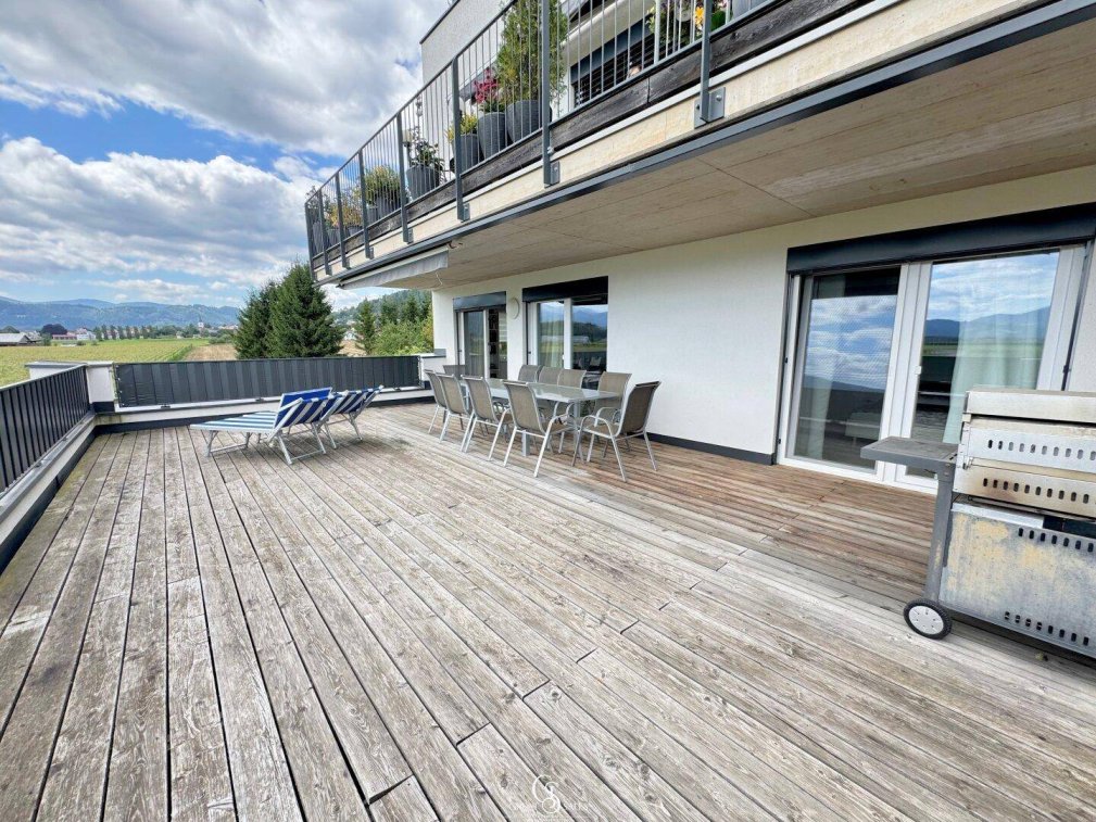 Die Wohnanlage, bestehend aus zwei Baukörpern, wurde erst 2016 errichtet und überzeugt durch eine hochwertige Bauweise sowie moderne Ausstattung. Sie umfasst Gartenwohnungen, Terrassenwohnungen im 1. Obergeschoß sowie Penthousewohnungen im 2. Obergeschoß – eine sehr beliebte Wohnadresse für Menschen, die Wert auf Qualität und Wohnkomfort legen.Die hier angebotene Wohnung bietet eine Wohnfläche von ca. 70 m² und befindet sich im 1. Obergeschoß, welches bequem mit dem Lift erreichbar ist. Die Wohnung zeichnet sich besonders durch große Fensterflächen, lichtdurchflutete Räume sowie einer optimalen Raumaufteilung mit einem großzügigen Wohn/-Essbereich aus. Dank der Lage als südwestlich gelegene Eckwohnung profitiert sie im Vergleich zu Mittelwohnungen von zusätzlichen Seitenfenstern in der Küche und im Wohnbereich, was die Räume besonders hell und freundlich wirken lässt.Ein absolutes Highlight ist die rund 55 m² große, barrierefrei zugängliche Terrasse, die mit einem hochwertigen Holzdielenboden ausgestattet ist. Sie ist zu etwa einem Drittel überdacht, verfügt zusätzlich über eine Markise und bietet dadurch sowohl Sonnenschutz als auch Privatsphäre. Die südwestliche Ausrichtung garantiert Sonnenschein von früh bis spät, Ruhe, sowie einen herrlichen Blick auf die umliegenden Felder und die Murtaler Bergwelt. Neben dem Wohn-/Essbereich hat auch das Schlafzimmer einen direkten Zugang auf die Terrasse.Raumaufteilung:Eingangsbereich / GarderobeOffene Küche mit Kochinsel und sämtlichen E-GerätenGroßzügiger Wohn-/Essbereich mit Zugang zur TerrasseSchlafzimmer mit TerrassenzugangBadezimmer mit mit Fenster, Walk-In-Dusche, Waschbecken, Alibert, elektrischen Handtuchwärmer und WaschmaschinenanschlussSeparates WC mit Fenster und HandwaschbeckenAbstellraumTerrasse mit Holzdielenboden, Teilüberdachung und MarkiseUrsprünglich war die Wohnung als 3-Zimmer-Wohnung geplant, wie im Grundriss ersichtlich. Auf das nordwestlich gelegene Schlafzimmer wurde jedoch vor Baubeginn vom Eigentümer, welcher bis Dato die Wohnung selbst bewohnt, zugunsten einer großzügigen, offenen Küche verzichtet. Diese Raumaufteilung schafft einen besonders weitläufigen Wohn-/Essbereich. Bei Bedarf kann das zusätzliche Schlafzimmer aber problemlos wiederhergestellt werden – die Küche müsste dafür lediglich an den ursprünglichen Standort verlegt werden.Die Ausstattung überzeugt durch hochwertige Materialien: In den Wohnräumen wurde Parkett verlegt, während Badezimmer und WC mit modernem Feinsteinzeug ausgestattet sind. Alle Fenster verfügen über Raffstores und Insektenschutz (Schiene).Die Wohnung verfügt über eine elektronisch regelbare Fußbodenheizung, die für ein angenehmes Wohnklima sorgt.