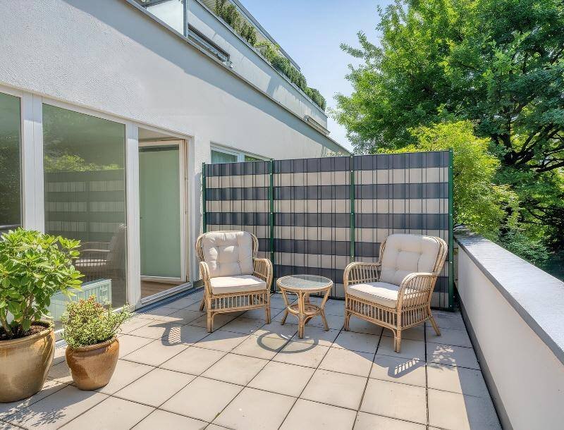 Westsonne und kurze Wege: Diese 2-Zimmer-Wohnung verbindet städtische Lagevorteile mit privatem Draußen. Gibt’s nicht oft. Der großzügige Wohnraum mit integrierter, neuwertiger Vito-Küche bildet das Herzstück – offen, einladend und mit fließendem Übergang ins Freie. Von hier geht’s auf die sehr private 33 m² große Terrasse. Wahnsinn! Hier begleitet die Sonne bis zum Abend, und dank der großen Glasfront strahlt sie tief in die Wohnung auf den edlen Boden in Holzoptik. Auch das Schlafzimmer hat direkten Terrassenzugang – auf und raus! Morgenluft. Das Bad ist zeitlos neutral verfliest und bietet Duschwanne, Waschtischverbau und WC – klar und gepflegt. Sofortbezug. Move in!