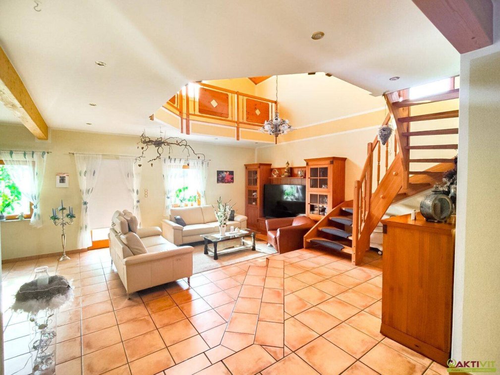Eingebettet in eine ruhige Wohnlage am Stadtrand von Feldkirchen in Kärnten präsentiert sich dieses außergewöhnliche Einfamilienhaus als Symbiose aus Lebensqualität, Naturverbundenheit und hochwertiger Ausstattung. Auf rund 420 m² Wohnfläche erwarten Sie sieben Zimmer, ein großzügiger Wellnessbereich mit medizinischer Ausstattung sowie liebevoll gestaltete Garten- und Teichanlagen. Die Liegenschaft überzeugt durch durchdachte technische Details, biologisch-nachhaltige Bauweise und vollkommene Ruhe.DIE VORTEILE DIESES HAUSES AUF EINEN BLICK:Absolute Ruhelage am Stadtrand von FeldkirchenNur ca. 30 Fahrminuten nach Klagenfurt7 Zimmer auf ca. 420 m² Wohnfläche mit klar strukturierter RaumaufteilungWellnessbereich mit Hallenbad, Whirlpool, Dampfbad, Infrarotkabine – medizinisch geeignet838 m² Grundstücksfläche –hochwertig eingefriedet mit BeleuchtungZwei NaturteicheAutomatisiertes GewächshausVier KFZ-Stellplätze und eine DoppelgarageVollmöbliert – inklusive Küche, Badezimmermöbel und technischer AusstattungDAS HAUSDas Wohnhaus erstreckt sich über drei Ebenen: Erdgeschoss, Obergeschoss sowie einen ausgebauten Kellerbereich. Im Erdgeschoss liegt der offene Wohn- und Essbereich mit hochwertiger Einbauküche, ein separates Gäste-WC sowie das großzügige Wohnzimmer mit Galerie und direktem Zugang zur überdachten Terrasse.Im Obergeschoss sind drei Schlafzimmer sowie ein zentrales Badezimmer untergebracht. Die Zimmer sind über eine Galerie erschlossen.Der ausgebaute Keller bietet neben Technik- und Lagerräumen auch ein großzügiges Archiv, einen Hobbyraum sowie den exklusiven Wellnessbereich mit Hallenbad (42 m² Wasserfläche), Whirlpool, Dampfbad, medizinisch ausgestatteter Infrarotkabine, Dusche und WC.Die Freiflächen umfassen drei sonnige Terrassen, teils überdacht, sowie eine gepflegte Gartenlandschaft mit Teichen, Bachlauf und Wasserfall.ZUSTAND UND AUSSTATTUNGDas im Jahr 2000 errichtete Haus befindet sich in einem sehr gepflegten Zustand und wurde konsequent hochwertig ausgestattet. Der Innenausbau erfolgte unter Verwendung biologischer Materialien – sämtliche Holzmittel sind naturbelassen. Die Räume im Obergeschoss verfügen über Lärche-Schiffböden und wurden elektrobiologisch entstört.Im Jahr 2024 wurde eine moderne Lichtsteuerung mit Netzfreischaltung im Obergeschoss installiert. Die gesamte Hausbeleuchtung ist auf 12 Volt ausgelegt, die Beleuchtung im Wellnessbereich und im Außenbereich ist akzentuiert und per Fernbedienung steuerbar.Die Fenster im Wohnbereich bestehen aus 2-fach verglastem Holz, in Gewerbebereich und Hallenbad aus 3-fach verglastem Kunststoff. Die Beheizung erfolgt über eine Kombination aus Solarthermie, einem Kachelofen mit Heizfunktion, Fußbodenheizung und einem 3.800 Liter Heizöltank im Garten.Der Wellnessbereich im ausgebauten Kellergeschoss ist ein echtes Highlight. Auf höchstem Niveau ausgestattet, bietet er ein 42 m² großes Hallenbad mit farblich steuerbarer Unterwasserbeleuchtung, ein Dampfbad mit Kneippfunktion, einen Whirlpool sowie eine Infrarotkabine aus Naturholz. Die gesamte Lichtführung im Wellnessbereich ist stimmungsvoll inszeniert und per Fernbedienung steuerbar. Auch hier sorgen Deckenlautsprecher für ein vollständiges audiovisuelles Entspannungserlebnis. Edle Stuckarbeiten und Naturmaterialien unterstreichen den exklusiven Charakter dieser Wohlfühlzone.Auch der Außenbereich erfüllt höchste Ansprüche: Das gesamte Grundstück ist neu eingefriedet, mit stilvoll integrierten Leuchten auf den Zaunstehern, ebenfalls per Fernbedienung steuerbar. Zwei großzügig angelegte Naturteiche – einer im oberen, einer im unteren Gartenbereich – sind durch einen liebevoll gestalteten Bachlauf mit kleinem Wasserfall verbunden. Die Wasserzufuhr erfolgt über ein eigenes System.Ein Gewächshaus mit automatisierter Steuerung für Bewässerung, Lüftung und Heizung erlaubt ganzjährigen Anbau. Die Gartenpflege wird durch ein unterirdisches Bewässerungssystem unterstützt.Zusätzliche Ausstattung:Video-Türsystem mit App-FunktionRFID-Zutrittssystem (Hallenbad & Haustüre)Vollständiges Netzwerk inkl. Netzwerkschrank & ServerStarkstromanschlüsse in Garage, Werkstatt und LagerMusiksystem mit Deckenlautsprechern im gesamten HausDoppelgarage mit Rigips-Ausbau und lackiertem BodenSmart-Home-Elemente für Licht, Garten und GewächshausDIE LIEGENSCHAFTDie rund 838 m² große Liegenschaft ist als Bauland gewidmet und vollständig erschlossen. Sie bietet eine besonders hochwertige Einfriedung mit Beleuchtungselementen und zwei elektrisch gesteuerten Zufahrten. Die Gartenanlage ist durch zwei Naturteiche, einen Bachlauf mit Wasserfall, ein automatisiertes Gewächshaus sowie ein intelligentes Bewässerungssystem geprägt.Die laufenden Betriebskosten belaufen sich auf rund 600 € monatlich. Heizkosten variieren je nach Nutzung.Zur Beantwortung weiterer Fragen sowie für Besichtigungstermine stehe ich Ihnen gerne täglich - auch am Wochenende - von 08:00 bis 22:00 Uhr zur Verfügung.Ich freue mich über Ihre Kontaktaufnahme,Sabine Trampitsch