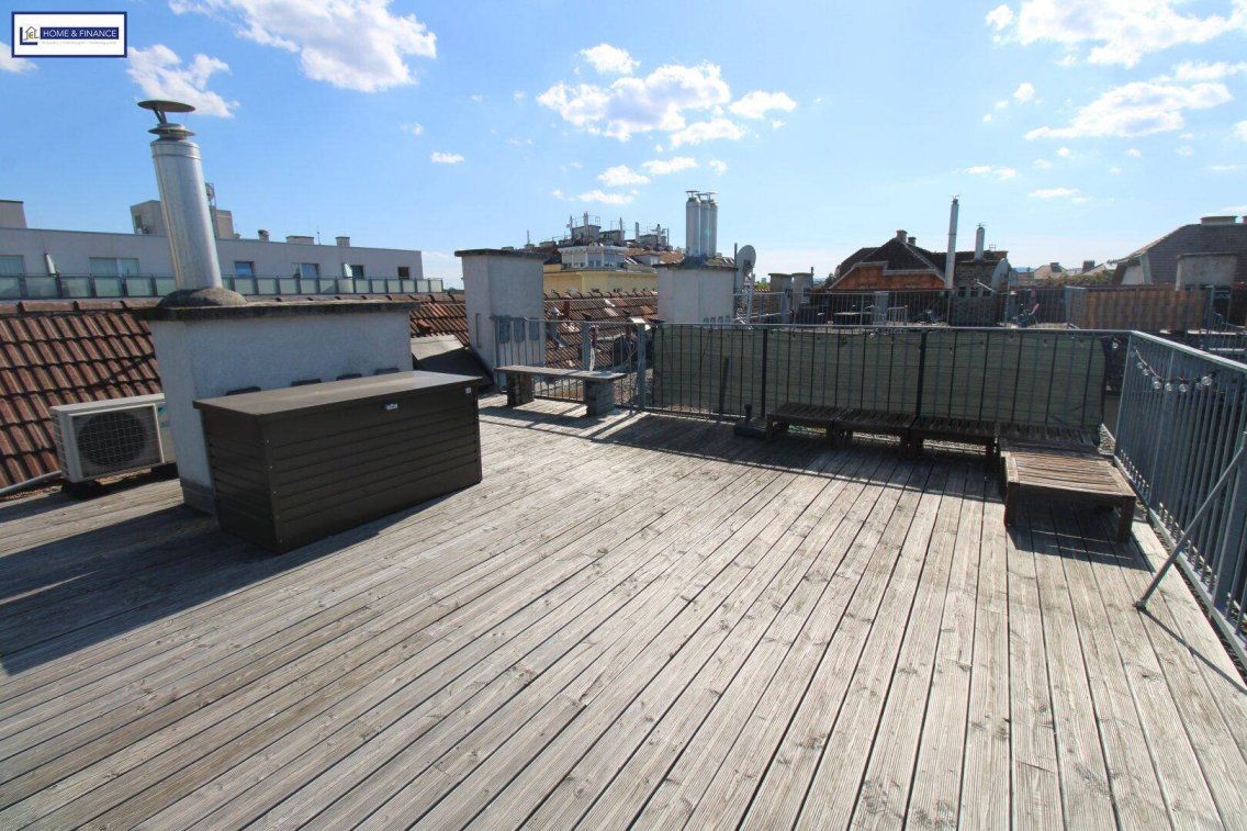 Wir präsentieren Ihnen diese helle Dachgeschoßwohnung im 3. Stock ohne Lift auf der Leopoldauer Straße.Aufgrund der Vergrößerung der Familie soll diese Wohnung nun schweren Herzens verkauft werden.Highlights:35 m² Dachterrasse mit 360° Rundumblick – Sonne, Weite und Privatsphäre77 m² Wohnfläche, hell, freundlich und durchdacht geplantoffenes, lichtdurchflutetes Wohnzimmer mit offener WohnkücheBadezimmer (2020 hochwertig saniert) mit Walk-in-DuscheKlimaanlage von DAIKIN für komfortables Wohnen im SommerSchon beim Betreten des zentralen Vorzimmers fällt Ihnen die angenehme und durchdachte Raumaufteilung auf.Das elegante Wohnzimmer mit der offenen Wohnküche und kleinem Abstellraum bildet dabei das Herz der Wohnung.Das Badezimmer hat seit 2020 eine bequeme Walk-in-Dusche. Hier findet auch die Waschmaschine ihren Platz.Das ostseitige Schlafzimmer verfügt über einen zusätzlichen Stauraum, der mittels einer kleinen Leiter gut erreichbar ist.Über das westseitige Schlafzimmer gelangen Sie auf die große Terrasse am Dach.Spätestens jetzt, wenn Sie sich einmal auf der Terrasse um die eigene Achse drehen und diese tolle Atmosphäre spüren, verstehen Sie warum der Eigentümer lange überlegt hat, die Wohnung zu verkaufen.Geheizt wird mittels einer Gasetagenheizung.Im Reparaturfonds befinden sich knapp 45.000.- Euro.Lage/Infrastruktur:Alles für den Alltag liegt in Gehweite – Lebensmittelgeschäfte, Apotheke, Schulen und Kindergarten.Besonders hervorzuheben sind die Nähe zum Krankenhaus Nord und zur Veterinärmedizinischen Universität.Mit den Buslinien 28A und 29A erreichen Sie in nur 3 Stationen den Bahnhof Floridsdorf (U6 & S-Bahn).Für Sport und Erholung ist die Alte Donau/Wasserpark/Donau zu Fuß erreichbar – perfekt für Freizeit, Radfahren oder Spaziergänge.Fazit: Dieses Zuhause ist mehr als eine Wohnung – es ist ein Rückzugsort über den Dächern der Stadt, wo Lebensqualität, Ruhe und urbanes Flair zusammenfinden.Entdecken Sie die Vorteile dieser einzigartigen und außergewöhnlichen Dachgeschoßwohnung!Überzeugen Sie sich selbst von den Vorzügen dieser Immobilie und fordern Sie jetzt das Expose mit weiteren Unterlagen an.Für weitere Informationen kontaktieren Sie bitte Herrn Uwe Fallmann unter [Telefonnummer entfernt] oder [E-Mail-Adresse entfernt].PROFITIEREN SIE VON DER KOMBINATION AUS IMMOBILIE, FINANZIERUNG UND VERSICHERUNG AUS EINER HAND - DAS SPART IHNEN ZEIT, GELD UND VOR ALLEM NERVEN!!!Der Vermittler ist als Doppelmakler tätig.
