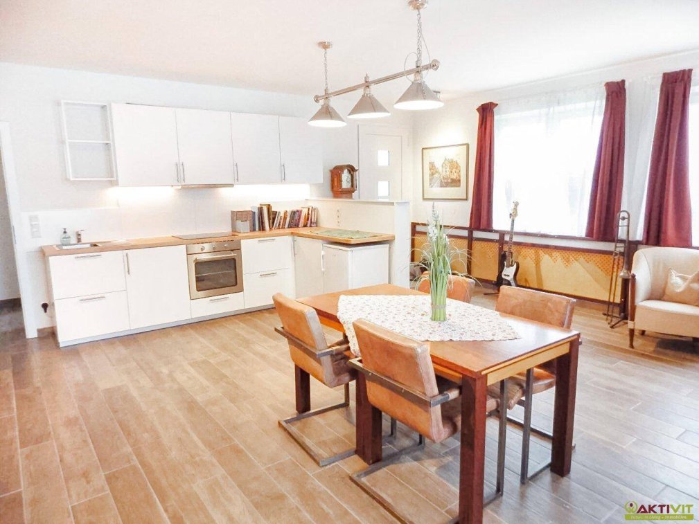 Die Wohnung bietet rund 66 m² Wohnfläche und verfügt über einen eigenen Gartenanteil von rund 148 m². Die Wohnung kann als Ferienwohnung vermietet oder als durchgehender Wohnsitz genutzt werden.Die Vorteile dieser Wohnung auf einen Blick:Beliebte Gartenwohnung in naturnaher Lage.Ideale Autobahn-Anbindung.Wohnnutzung und Vermietung möglich.Rund 66 m² Wohnfläche + Keller.Erst 2020 umfassend renoviert.Einrichtung und Ausstattung inklusive.Stellplatz bei Bedarf zusätzlich erwerbbar.Anschließende Möglichkeit zur Unterbringung von Pferden.DIE WOHNUNG:Die Wohnung hat insgesamt ca. 66 m² Wohnnutzfläche und ein zugehöriges Kellerabteil.Die Wohnung beginnt mit einem Eingangsbereich und Vorraum, von diesem ist das Wohnzimmer mit offener Wohnküche erreichbar.