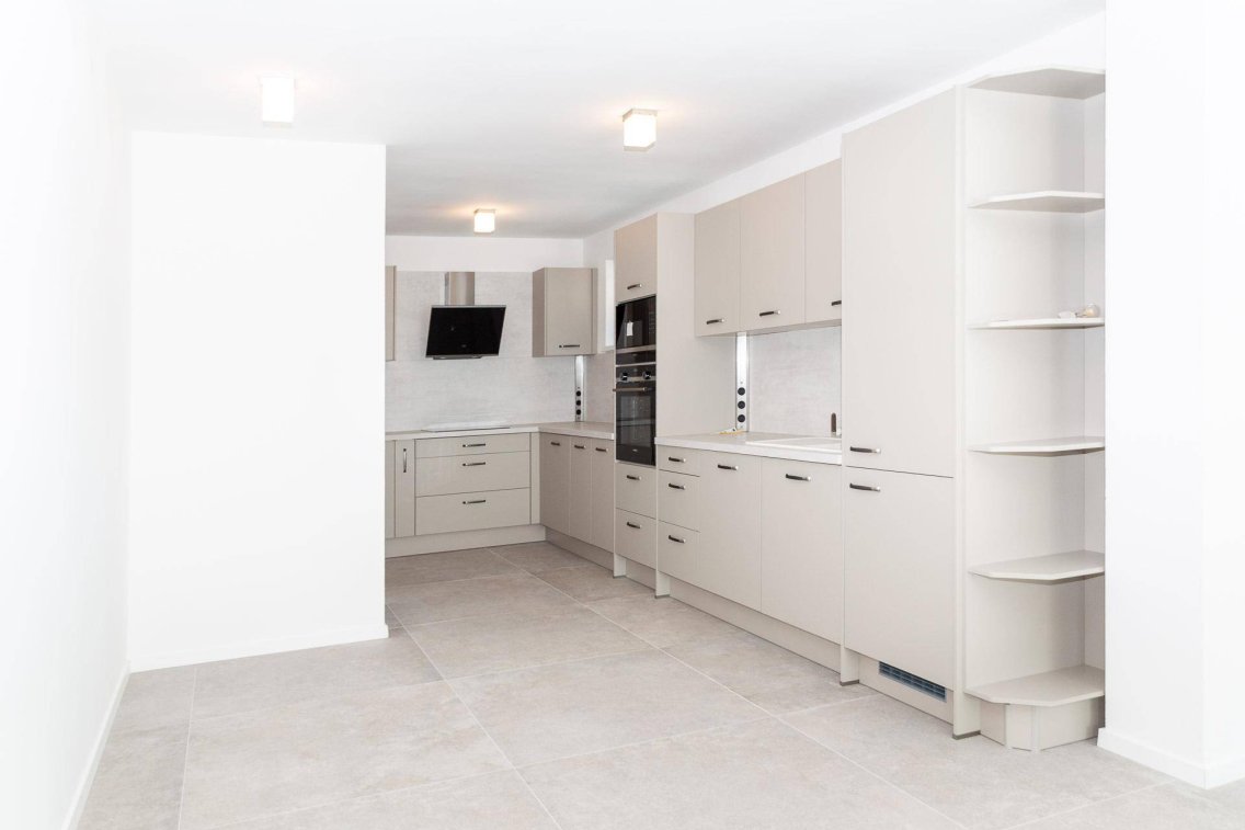 Vom Eingangsbereich aus betreten Sie zunächst einen Vorraum, der in das lichtdurchflutete Wohnzimmer mit offener, voll ausgestatteter Küche übergeht. Große Fensterfronten eröffnen den Blick auf die überdachte Terrasse und sorgen für ein angenehmes Wohnambiente. An die Küche schließt sich ein praktischer Wirtschaftsraum an, von dem aus Sie direkten Zugang zum Carport haben.