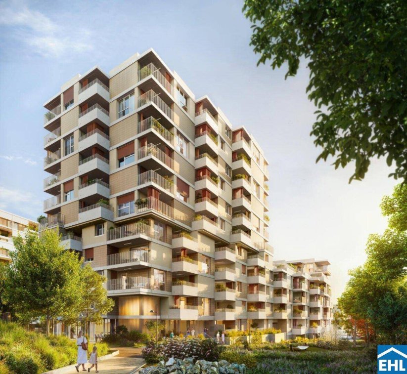 Mit dem VILLAGE IM DRITTEN entsteht in Wien ein neues, lebendiges Stadtquartier mit rund 2.000 Wohnungen, dazu Büro- und Gewerbeflächen, Nahversorgung sowie Kinderbetreuungs- und Bildunseinrichtungen, welches das moderne Wohnen mit viel Grün, Gemeinschaft und nachhaltiger Energieversorgung verbindet.Das Baufeld 14B nimmt dabei eine besondere Rolle ein: Zwei Bauteile die sich zu einem Baukörper vereinen – sechs bzw. elf Geschosse hoch – fügen sich harmonisch in die Umgebung ein und eröffnen Platz für 109 Wohnungen mit zwei bis fünf Zimmern sowie zwei Gewerbeflächen im Erdgeschoss. Das Projekt spricht besonders Jene an, die zentrumsnah, urban und gleichzeitig naturnah wohnen möchten. Hier finden Familien, Paare, Singles wie auch ältere Generationen ein Zuhause, das den Wunsch nach Individualität mit dem Gefühl von Gemeinschaft verbindet.ARCHITEKTUR MIT CHARAKTERVon PLSA ZT Architekten geplant, entsteht am Baufeld 14B ein echtes „Kubaturwunder“ für vielfältige Arbeits- und Lebensräume, im Verbund mit einer hohen Aufenthaltsqualität im Freien. Durch die schachbrettartige Ausbildung von Vor- und Rücksprüngen sowie sich geschoßweise wechselnden Fassadenansichten entstehen einzigartige Grundrisse, die je nach Wohnungsgröße gleich mehrere (Garten)-Loggien bzw. Balkone ermöglichen. Vorwiegend großzügige raumhohe Fensterfronten und begrünte Loggien bringen viel Licht ins Innere und lassen die Natur Teil des Wohnens werden.Ein besonderes Highlight ist der offene Atriumbereich im Erdgeschoss, der als „Grüne Mitte“ fungiert, die Architektur auflockert und Begegnungszonen schafft. Im 4. Obergeschoss verbindet ein begrünter Dachgarten die beiden Bauteile – ein Ort des Rückzugs ebenso wie des Austauschs. Pergolen und grüne Oasen verwandeln ihn in eine urbane Ruhezone mit hoher Aufenthaltsqualität.DAS PROJEKT – Leben mit VielfaltDie Einzigartigkeit des Projektes wird durch die architektonische Gestaltung hervorgehoben, Großteils mit Sichtbetondecken und durch die Vor- bzw. Rücksprünge entstehen Sichtverbindungen die den Wohnungen eine außergewöhnliche Großzügigkeit und ein loftartiges Ambiente verleihen. Ergänzt wird das Angebot im Haus mit einem 2-geschoßigen Boulderraum und einem Multifunktionsraum mit großer Terrasse, zwei Gewerbeflächen sowie einer Tiefgarage. Die Wohnungen sind in Größen von 43 bis 131 m² geplant und bieten flexible Grundrisse für unterschiedlichste Bedürfnisse – vom kompakten Zwei-Zimmer-Apartment bis hin zur großzügigen Fünf-Zimmer-Familienwohnung. Damit entsteht ein vielseitiges Angebot für gemeinsames Erleben – generationenübergreifend und individuell nutzbar.109 freifinanzierte Eigentumswohnungen 58 Tiefgaragenplätze 2 – 5 ZimmerwohnungenFußbodenheizungKinderspielbereich mit 2-geschoßigen Boulderraum (Kletterhalle)Großer Multifunktionsraum mit Küche, Werkbank und vorgelagerter TerrasseWeitläufige Parkanlage direkt vor der TüreKinderwagenabstellräume Besonders großzügiger Fahrradabstellraum mit direkter Zufahrt DIE AUSSTATTUNG – Wohnen mit Stil und KomfortDie Wohnungen überzeugen mit einer gehobenen Ausstattung und vielen liebevollen Details, die den Alltag erleichtern und gleichzeitig das Wohngefühl steigern:Raumhohe und flächenbündige Holz-Alu-Fenster für lichtdurchflutete RäumeAußenliegender Sonnenschutz mit Markisoletten, Kassettenmarkisen, Screens oder textilen Vorhängen (je bauphysikalischer Vorgabe)Weitzer- ParkettbodenAusgewählte Feinsteinzeugfliesen und Sanitärausstattung von Villeroy&Boch sowie Grohe ArmaturenFlächenbündige Innentüren bzw. teilweise raumhohe Innentüren bei den LoggienAlle Wohnungen mit Freiflächen, teils mit mehreren Loggien bzw. selbst bepflanzbare Gartenloggien in großen Wohnungen als private RückzugsräumeFußbodenheizung samt Kühlung durch AnergienetzversorgungInnovative Lüftungssysteme kontrollierte WohnraumlüftungAttraktive Außenräume mit großzügigen Abständen zu NachbargebäudenJede Wohnung ist so gestaltet, dass sie Lebensqualität und Komfort vereint – perfekt für Menschen, die ihr Zuhause als Ort der Ruhe und Inspiration schätzen.Nachhaltigkeit – für eine bewusste ZukunftDas Energiekonzept von VILLAGE IM DRITTEN ist zukunftsweisend:Alle Baufleder sind mit einem Anergienetz verbundenErdwärmesonden unter den GebäudenPhotovoltaikanlagen am DachKlima:aktiv Silber-ZertifizierungSo entsteht ein Wohnraum, der nicht nur für heute, sondern auch für kommende Generationen gedacht ist. Nachhaltigkeits-Pioniere und Eco-Tech-Affine finden hier einen Lebensstil, der ökologisches Bewusstsein und modernen Komfort verbindet.VILLAGE IM DRITTEN setzt in puncto Energieversorgung europaweit neue Maßstäbe. So viel Energie wie möglich soll vor Ort produziert und verwendet werden. Zum Einsatz kommen dabei 500 Erdwärmesonden mit 150 Tiefe, mehrere großflächige Dach-PV-Anlagen mit über einem Megawatt installierter Leistung, Wärmepumpen und ein Anschluss an die Fernwärme. Bis zu 80 Prozent der Heizenergie im VILLAGE IM DRITTEN werden aus lokalen Quellen gewonnen.Nähere Informationen auf: https://villageimdritten.at/wohnungsfinder/wohnungsfinder-baufeld-14b/Provisionsfrei für den Käufer