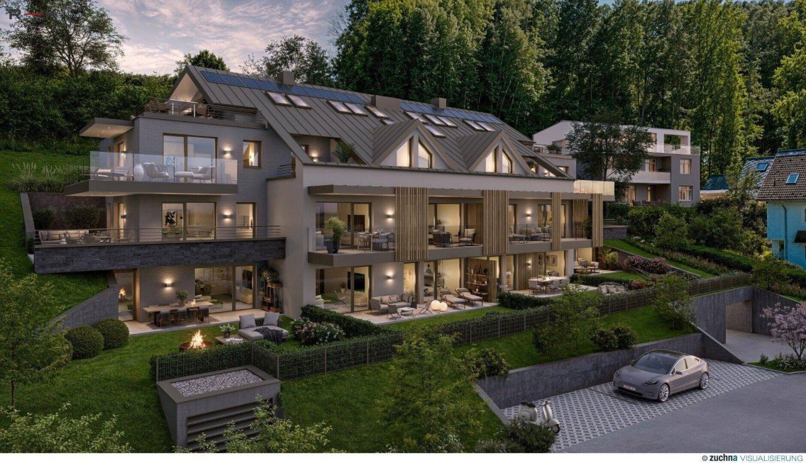 Der Lift führt von der Tiefgarage bis ins 2. Obergeschoss. Zusätzlich gehören ein eigenes Kellerabteil sowie zwei Tiefgaragen-Stellplätze (je € 28.000,-) zur Wohnung.AusstattungWie auch bei anderen Bauprojekten von RK Wohnbau stehen hohe Wertigkeit und Langlebigkeit bei der Ausstattung im Fokus. Das zeigt sich bereits beim ersten Betreten der Wohnräume mit edlen Parkettböden aus Eiche. Bäder und Toiletten sind mit großformatigem Feinsteinzeug ausgefliest und mit Sanitäreinrichtung von Qualitätsmarken ausgestattet. Für ungestörte Ruhe sorgen dreifach verglaste Kunststoff/Alu-Isolierfenster sowie flachbündige Holztüren mit stumpf einschlagenden Türblättern. Die in allen Räumen verlegte Fußbodenheizung gewährleistet effizientes Heizen und ein optimales Raumklima. Mit der PV-Anlage am Dach setzt man Nachhaltigkeitskonzepte konsequent um.LageDas Projekt befindet sich im Ortsteil Ochsenharing in der malerischen Gemeinde Mattsee. Die Lage bietet eine perfekte Kombination aus Natur und Lebensqualität: In wenigen Gehminuten erreicht man das Seeufer, Spazier- und Radwege sowie den Ortskern mit Cafés, Restaurants, Bank, Schulen und Einkaufsmöglichkeiten. Die direkte Umgebung ist geprägt von gepflegten Einfamilienhäusern, viel Natur und einen einmaligen Weitblick durch die erhöhte Lage. Gleichzeitig profitiert man von einer guten Verkehrsanbindung – sowohl mit dem Auto als auch mit öffentlichen Verkehrsmitteln ist die Stadt Salzburg rasch erreichbar.