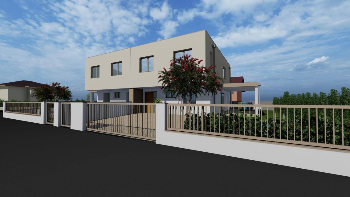 Anmerkung: „Die Anschlüsse für Strom, Wasser und Kanal wurden jeweils separat für jedes Haus verlegt. Das Grundstück wurde im Grundbuch bereits aufgeteilt.“
